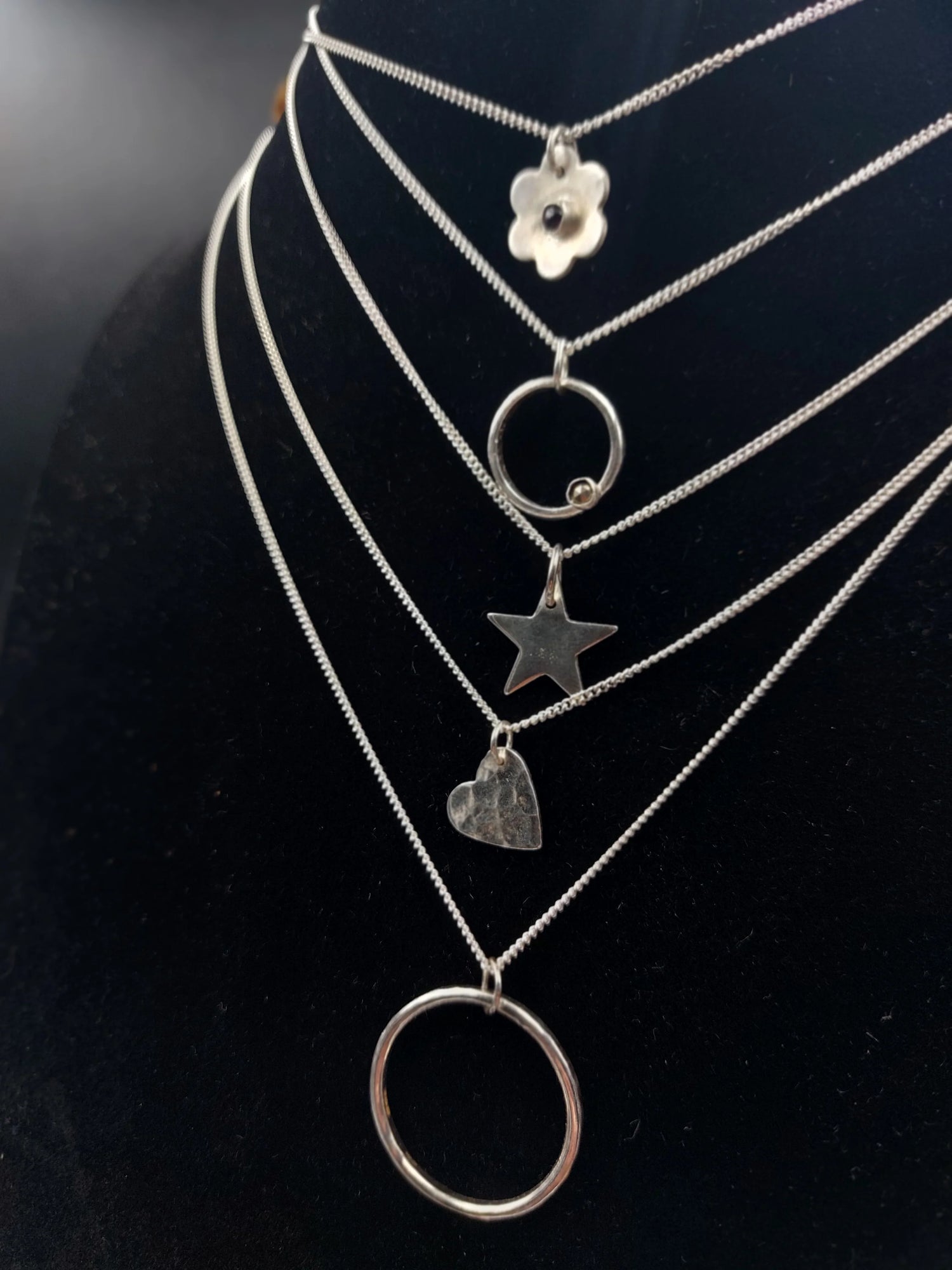 A selection of handmade sterling silver pendants and necklaces. All pendants come...
