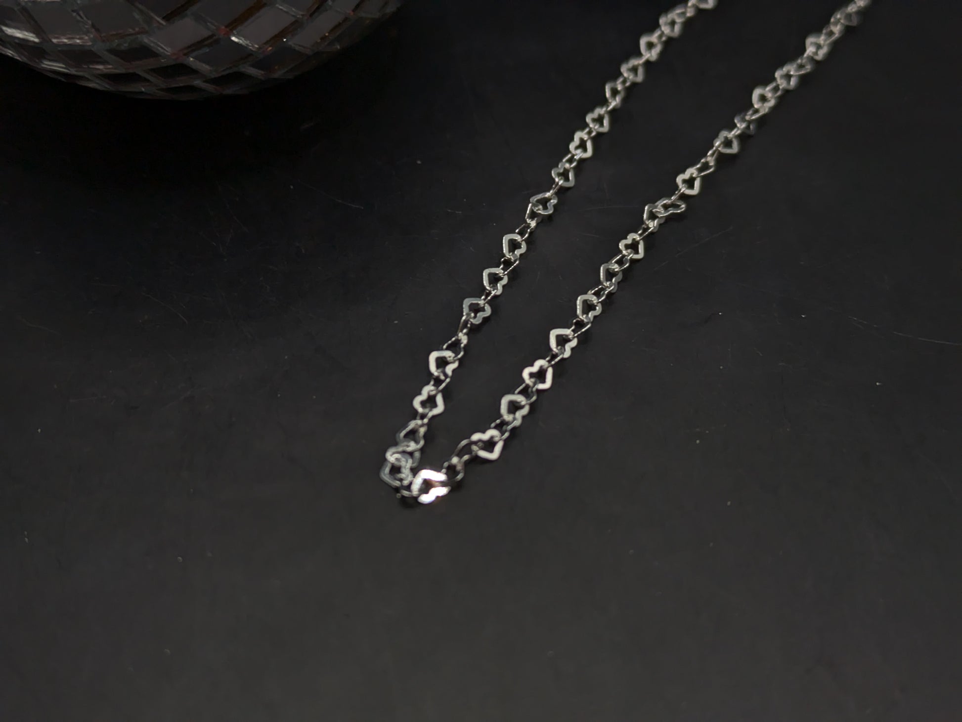 A super pretty sterling silver chain made up of little heart shaped links.