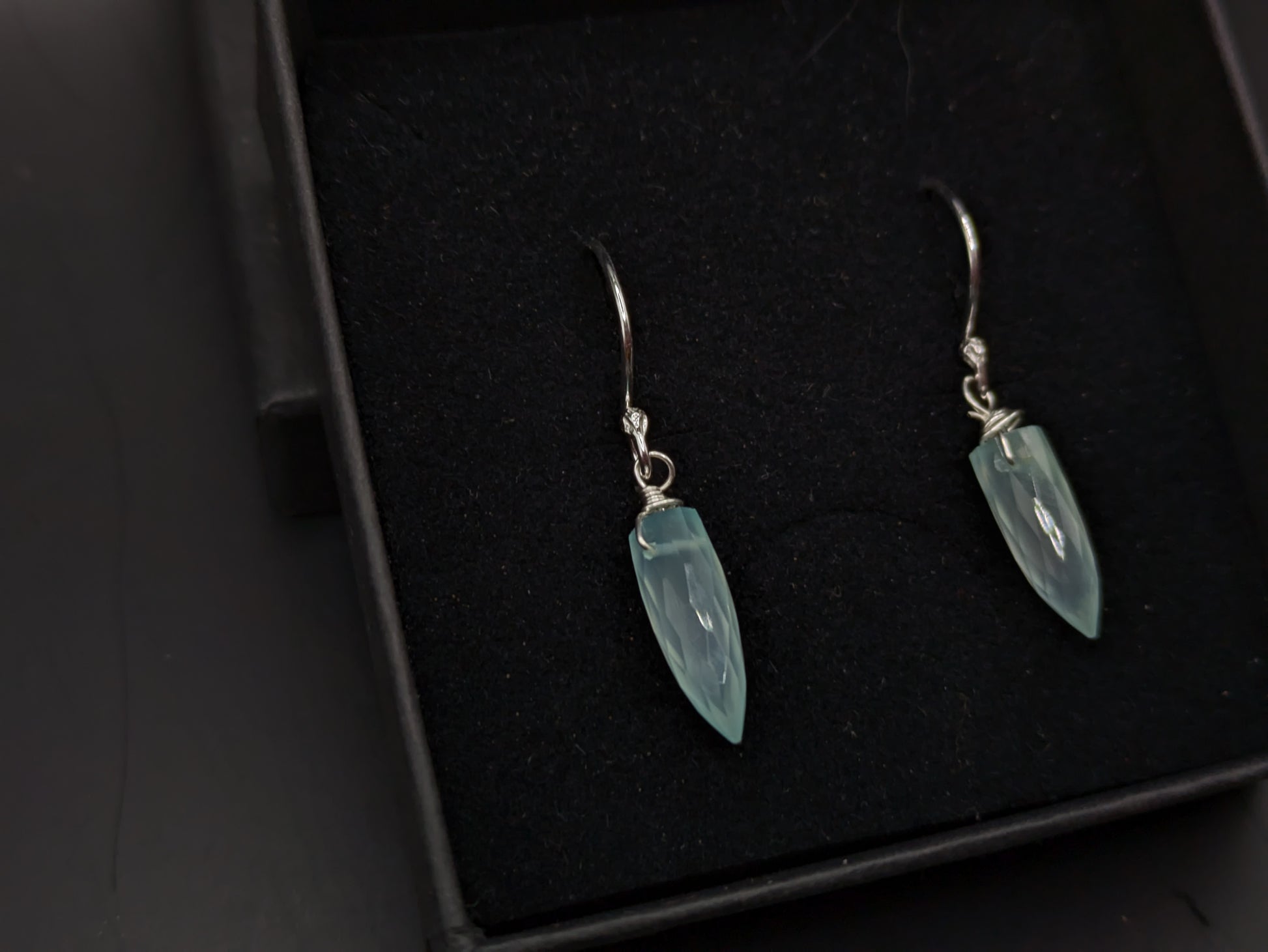 Ethically sourced aqua chalcedony drop earrings!