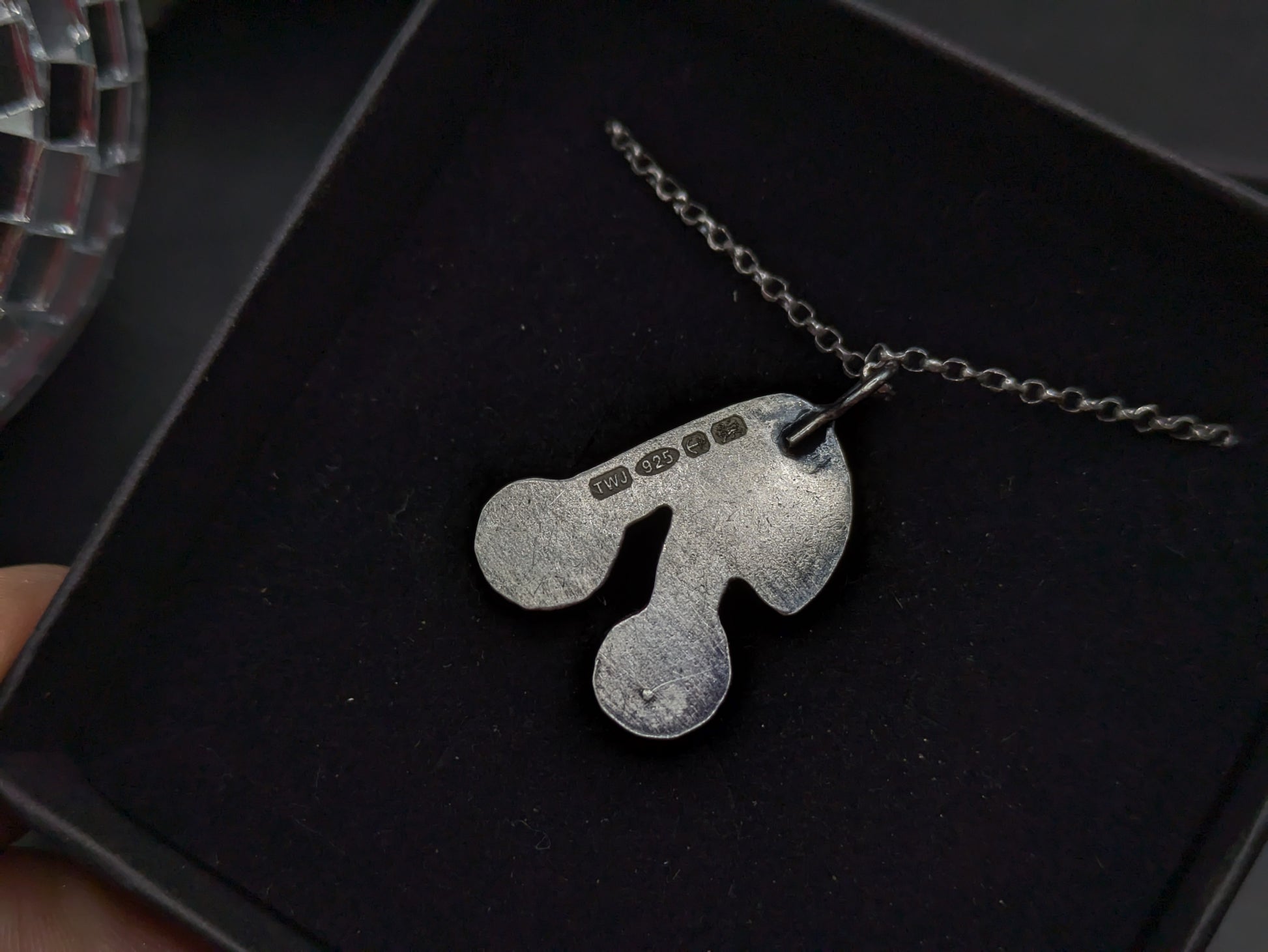 The pendant is approximately 2.5 cm long and comes on a sterling silver chain.