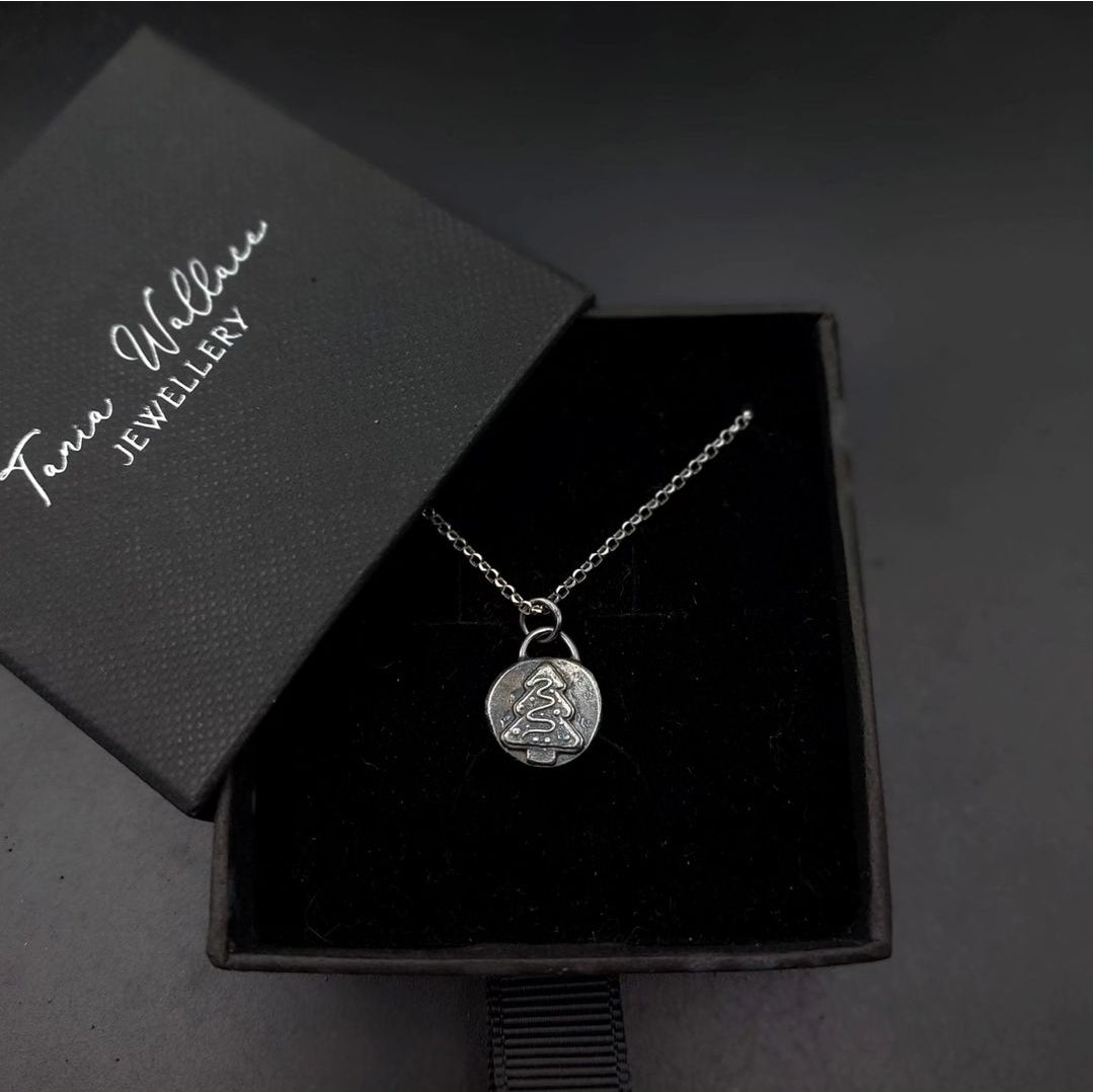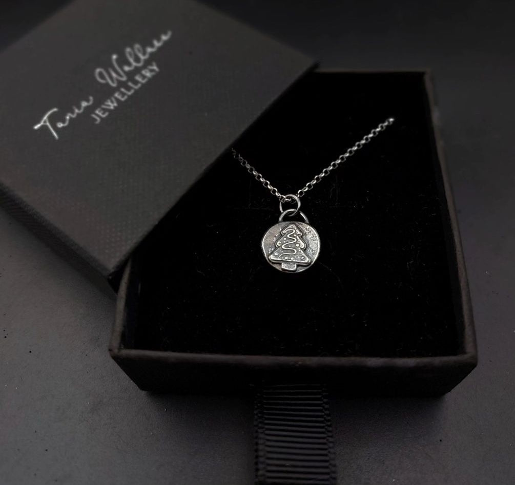 Gorgeous Christmas tree cookie design pendant made from solid silver and oxidised for extra detail amd for a rustic finish.