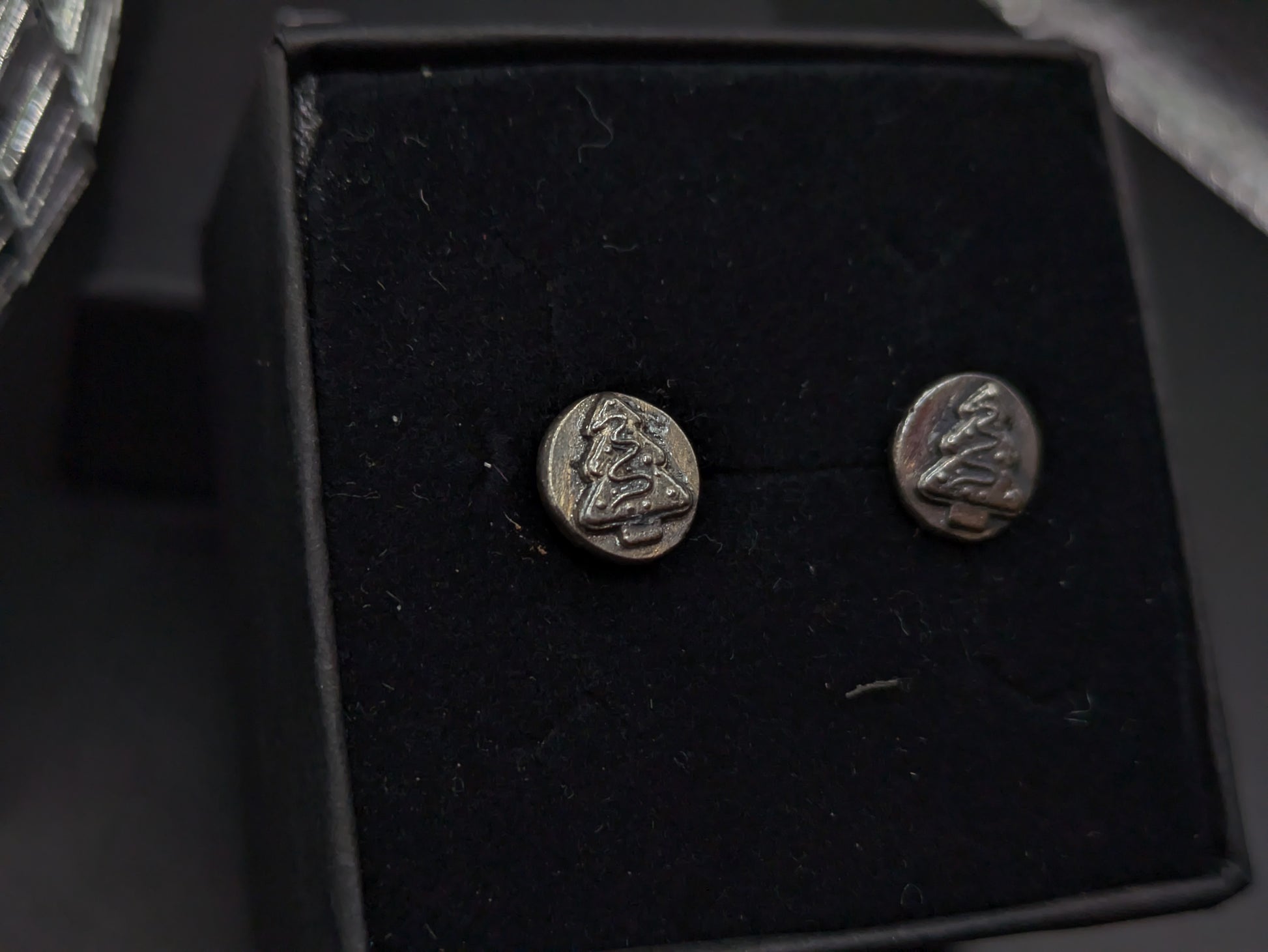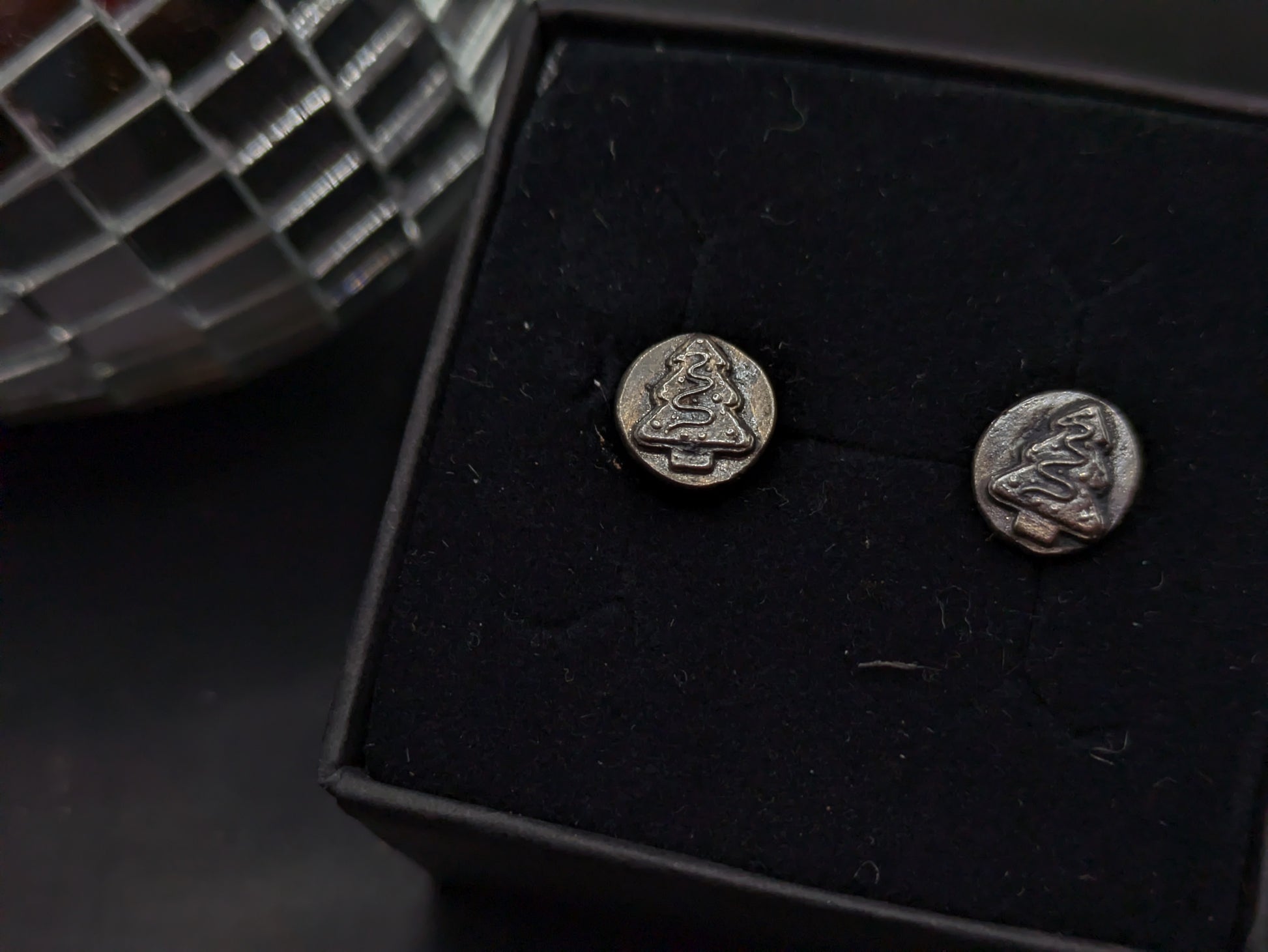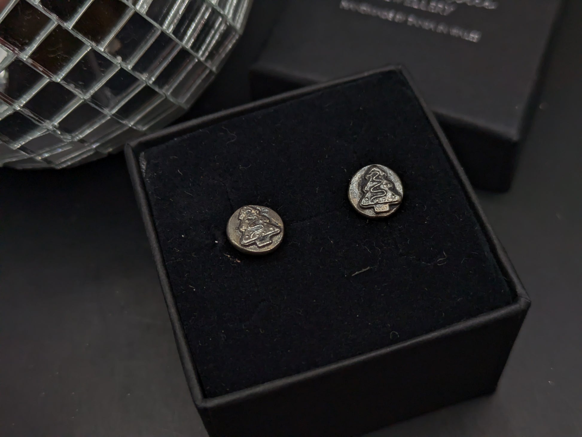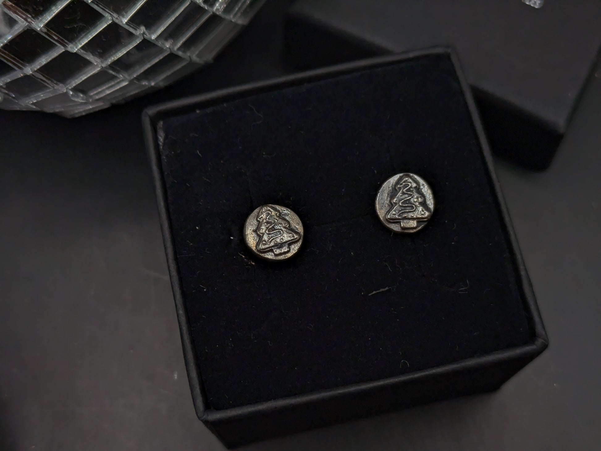 These solid silver studs are made from handpressed solid silver with the pattern of a Christmas tree cookie! They are fun and festive earrings, ideal as a gift for you or a loved one to enjoy over Christmas!