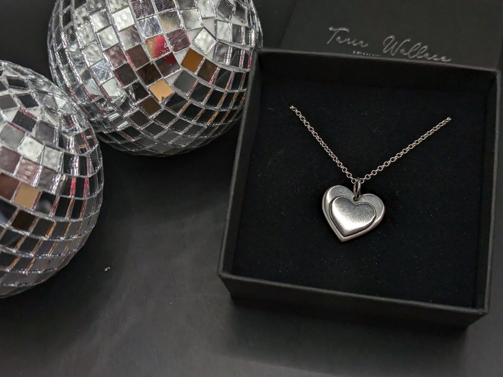 This is a gorgeous double heart pendant which measures approximately 2 cm wide at its widest point. I have punched and soldered the two hearts together, removed any rough edges and hand polished it to a high shine.