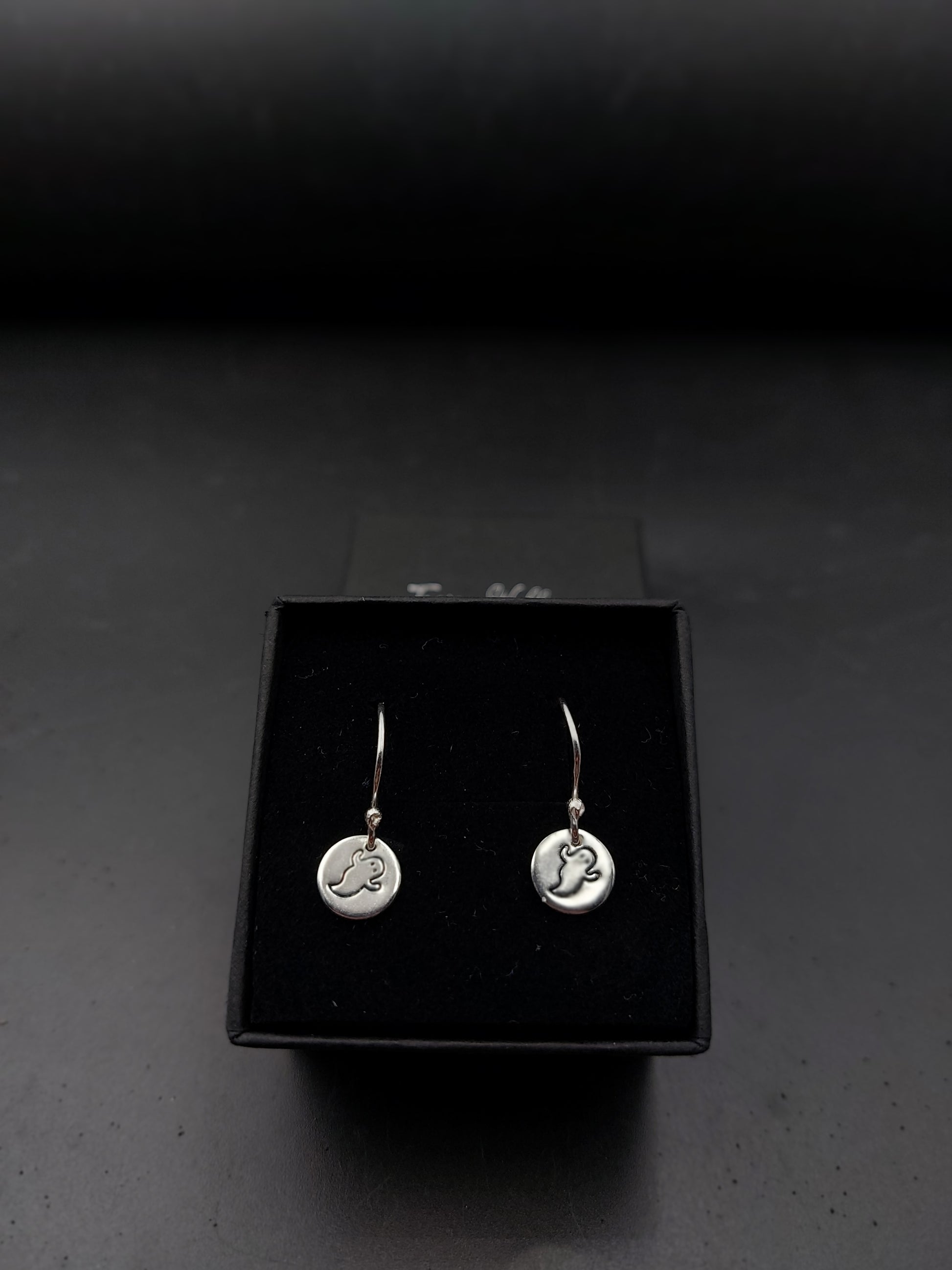Cute little drop earrings with ghost design made from sterling silver with handmade sterling silver hooks.
