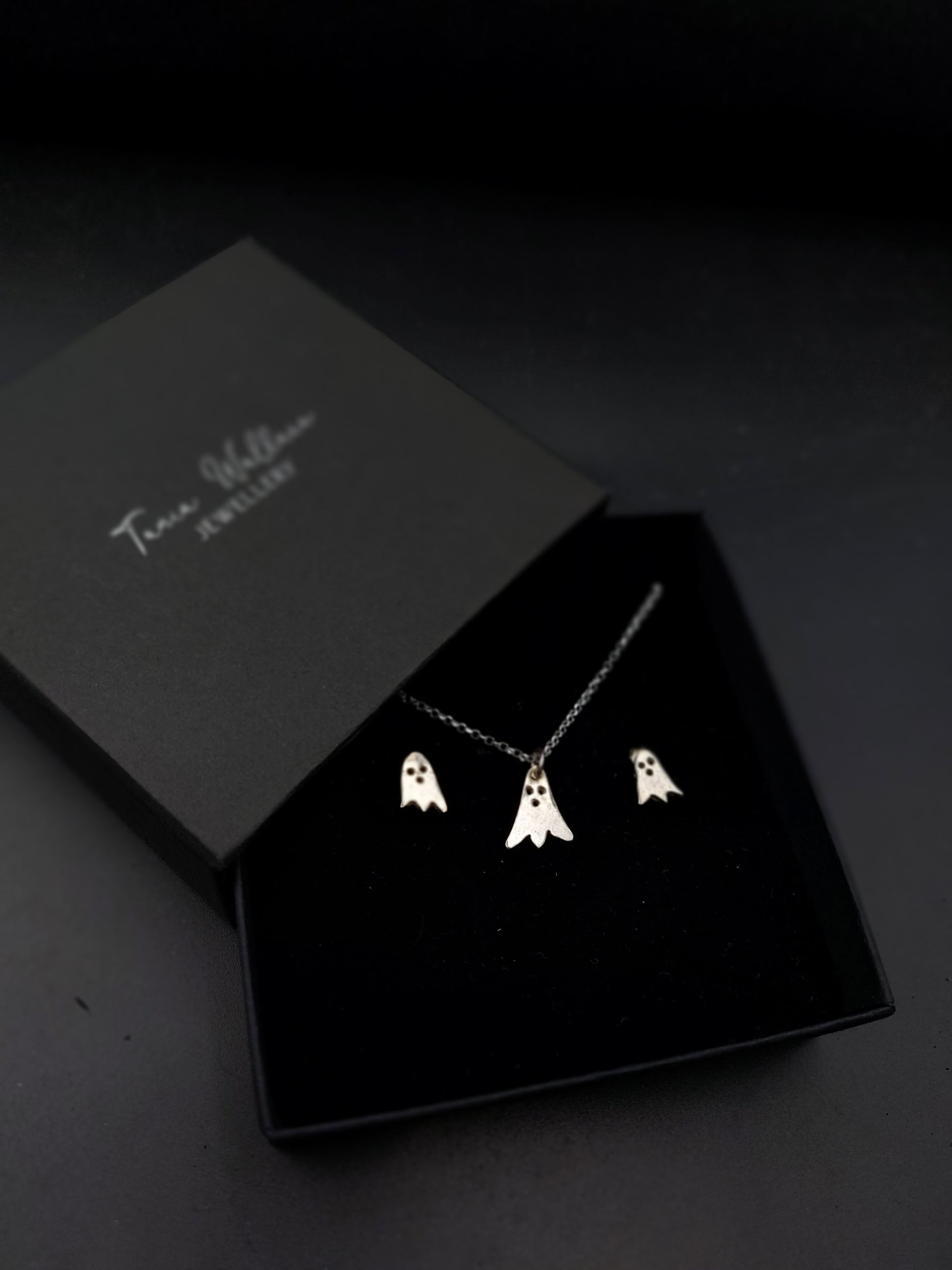 The pendant comes on a silver chain and the studs come with the scrolls.