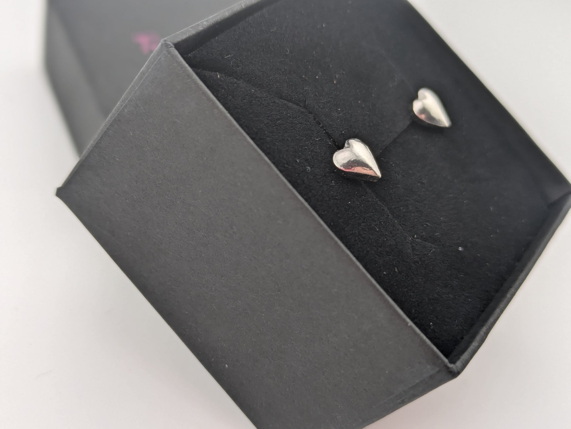Solid silver dainty and classy hand pressed and hand carved heart shaped studs.