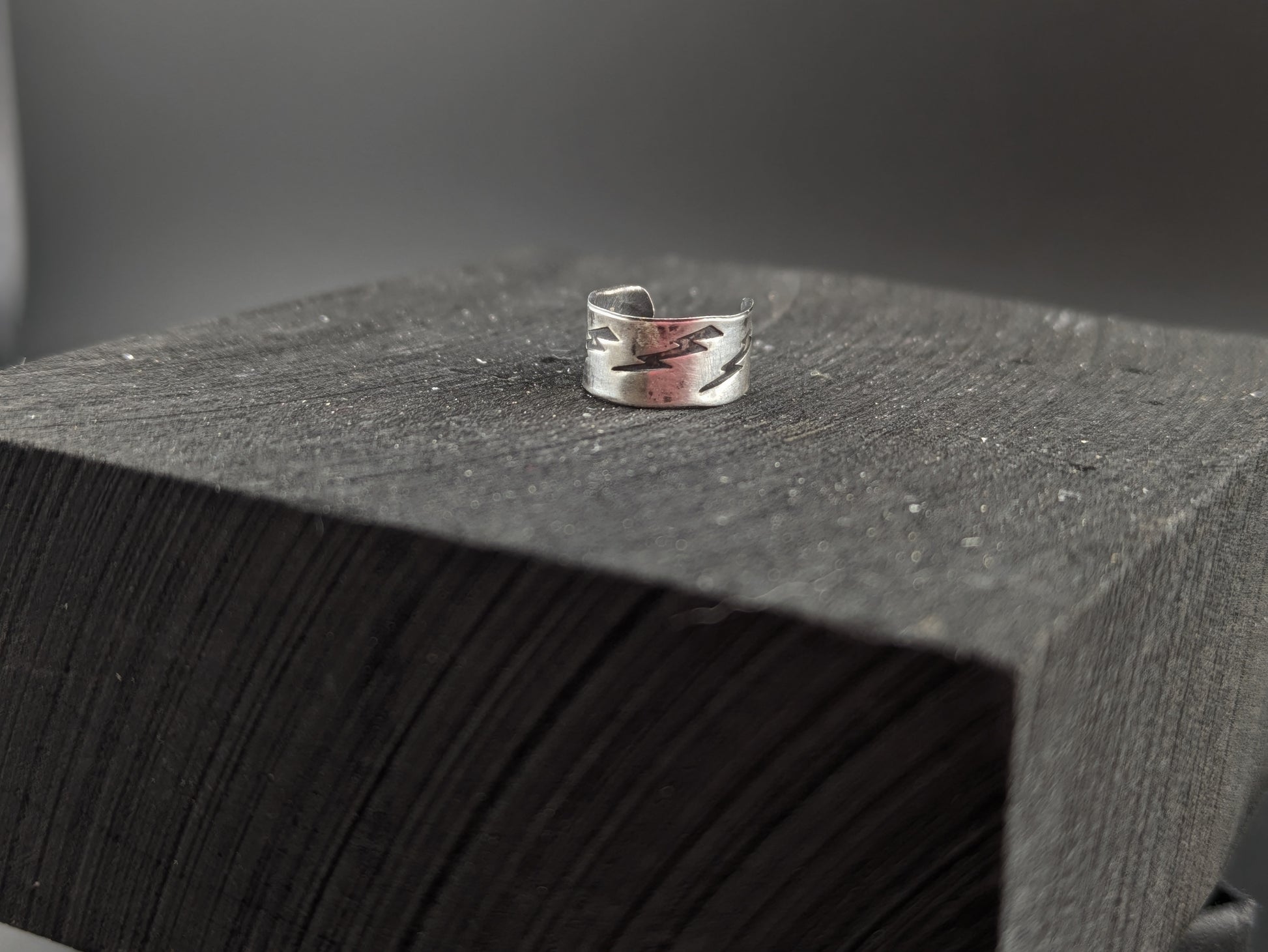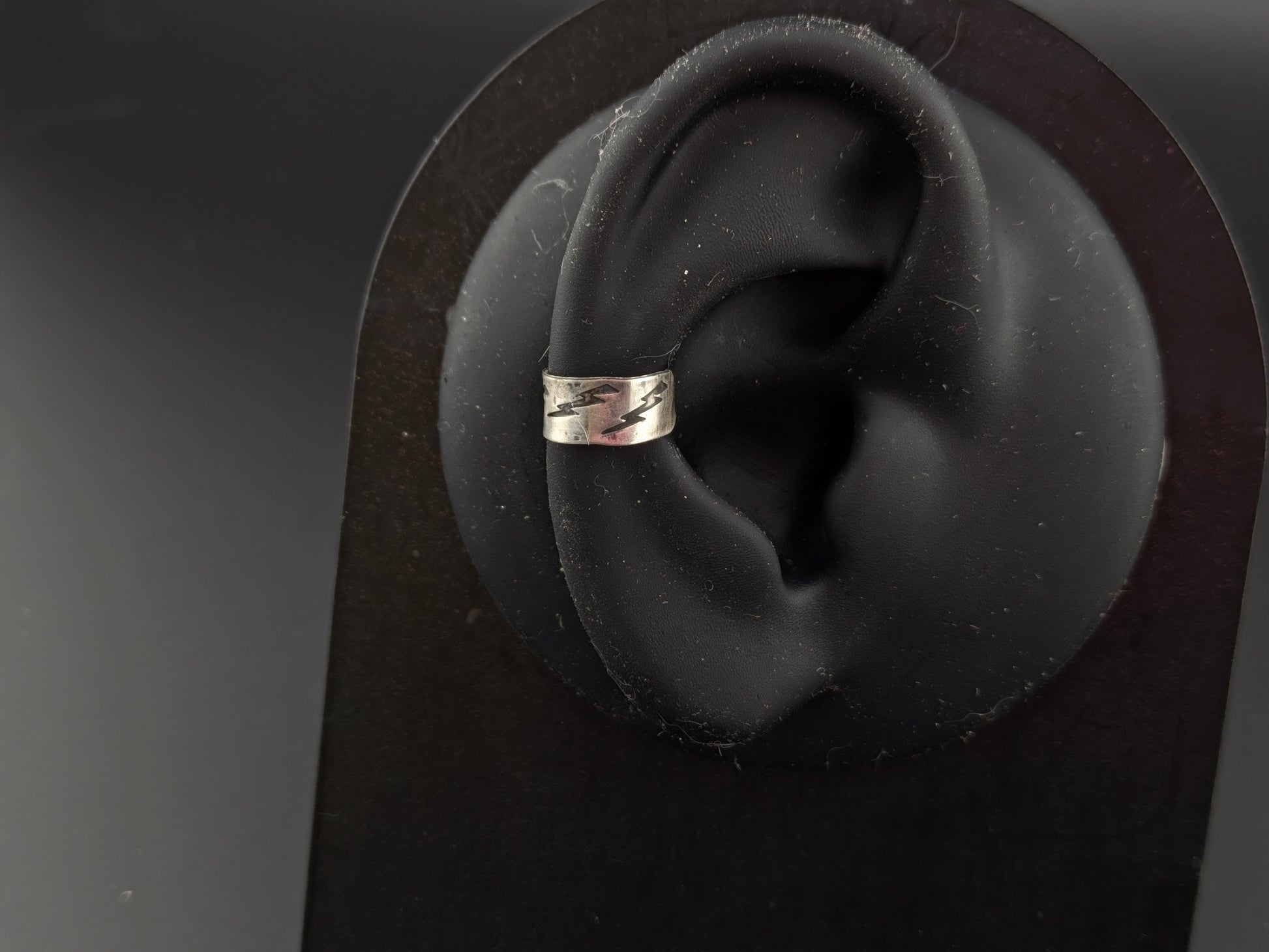 Handmade ear cuff made from recycled sterling silver and hand punched with lightning bolt patterns.