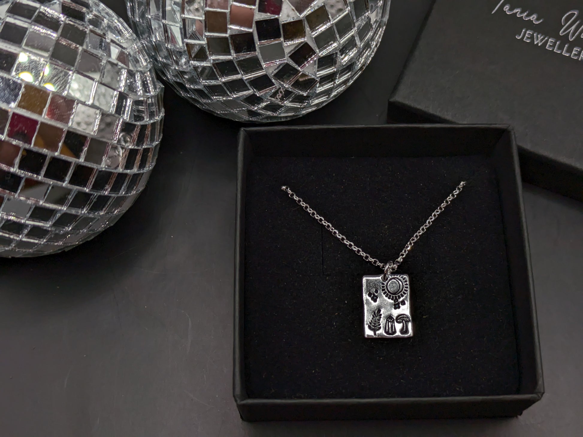 The pendant comes on a sterling silver chain and the matching drops come on handmade sterling silver hooks.