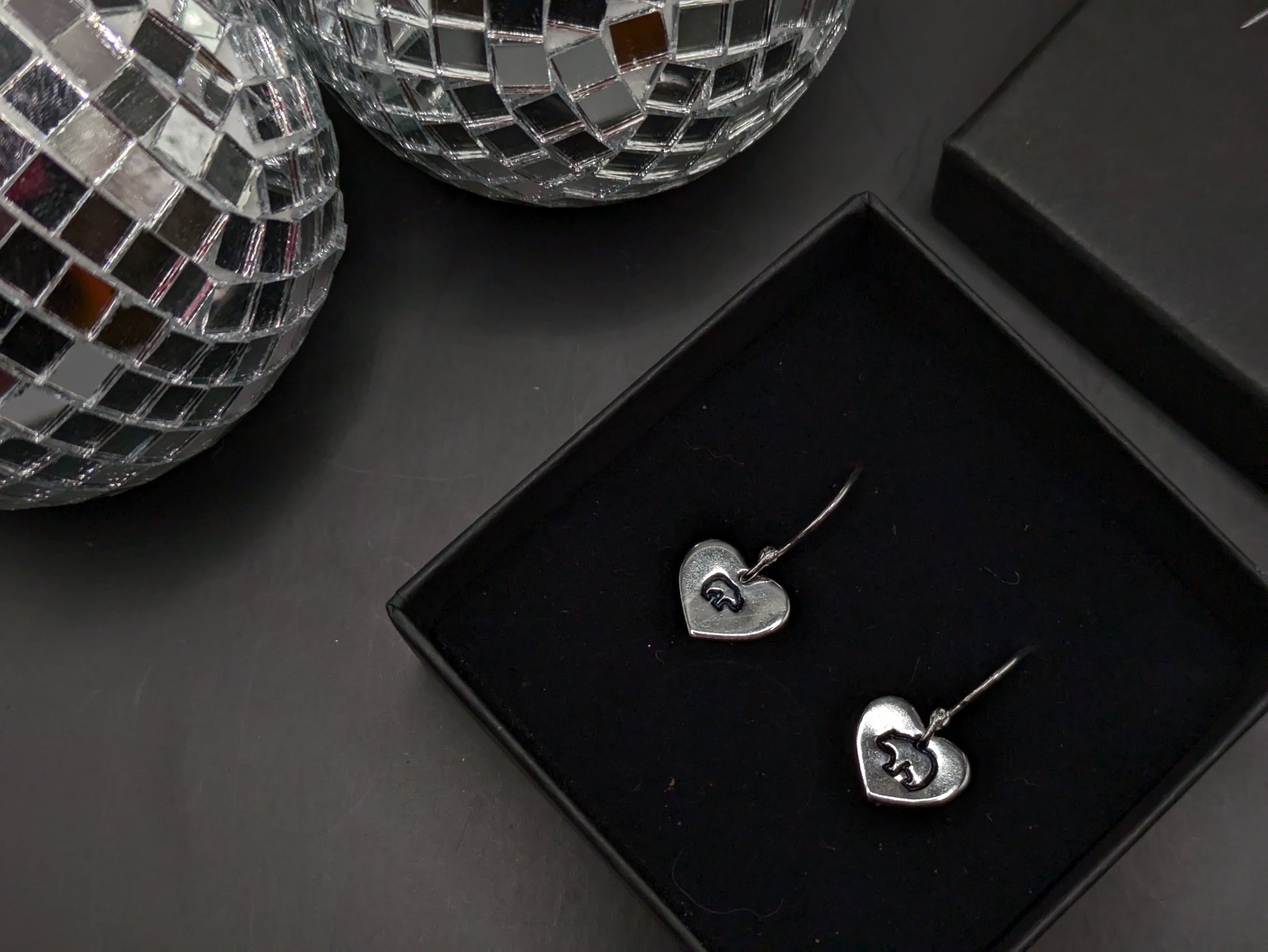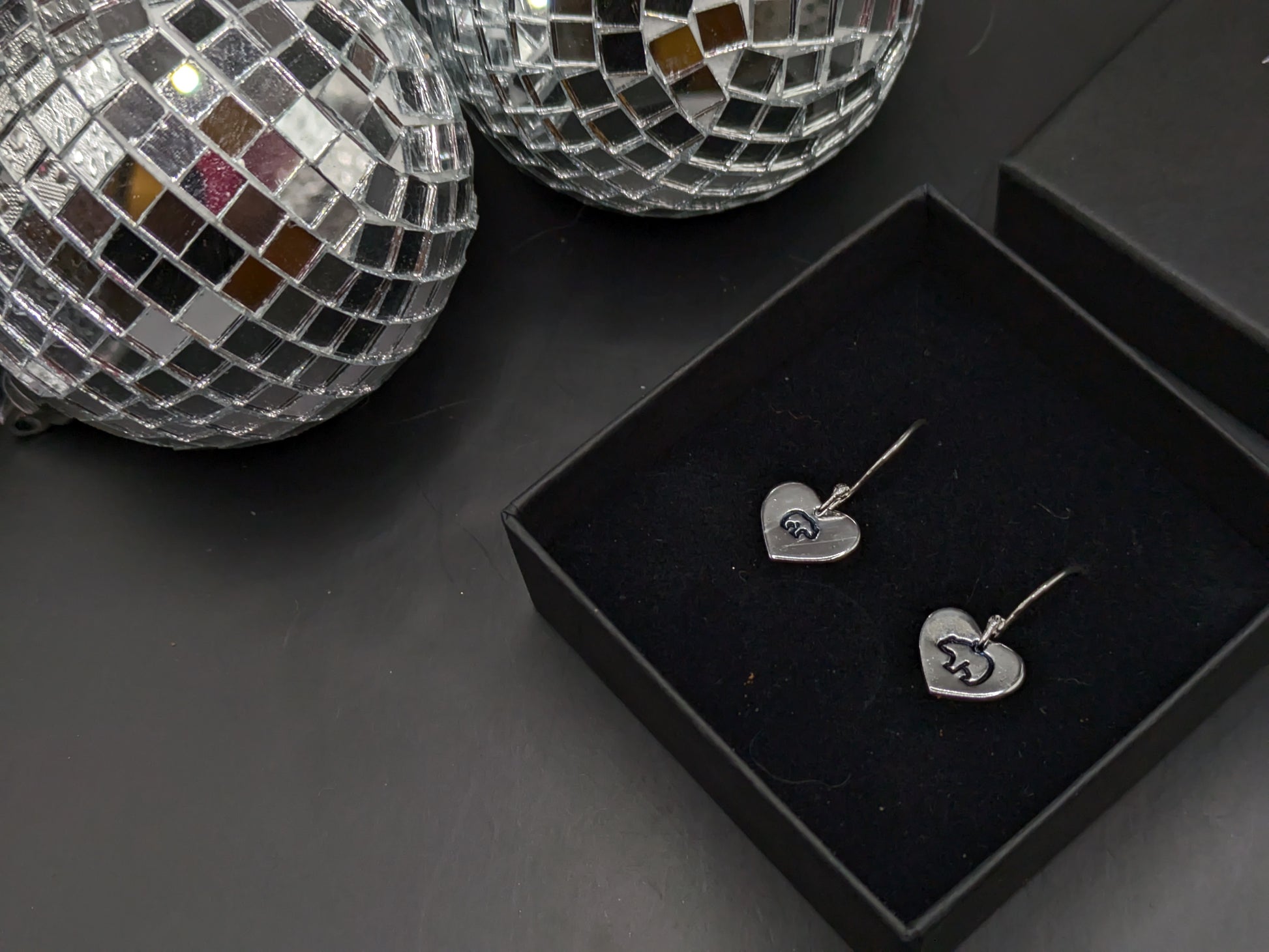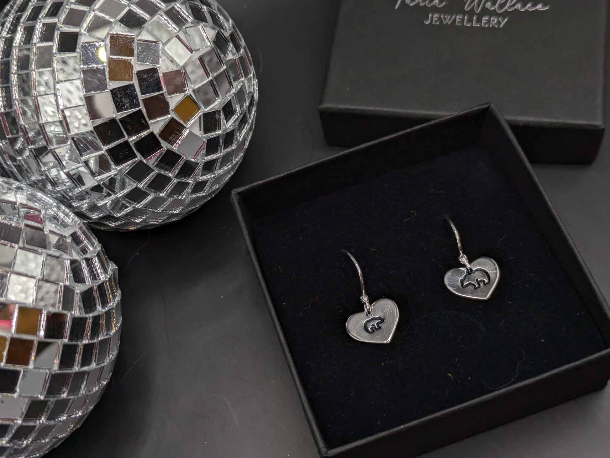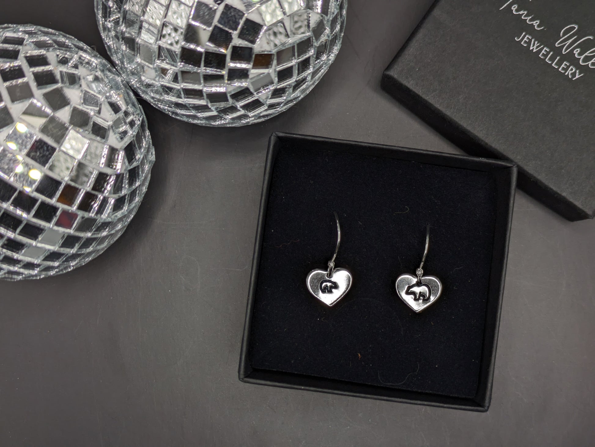 Cute little sterling silver heart drops with impressions of the mama and baby bears.