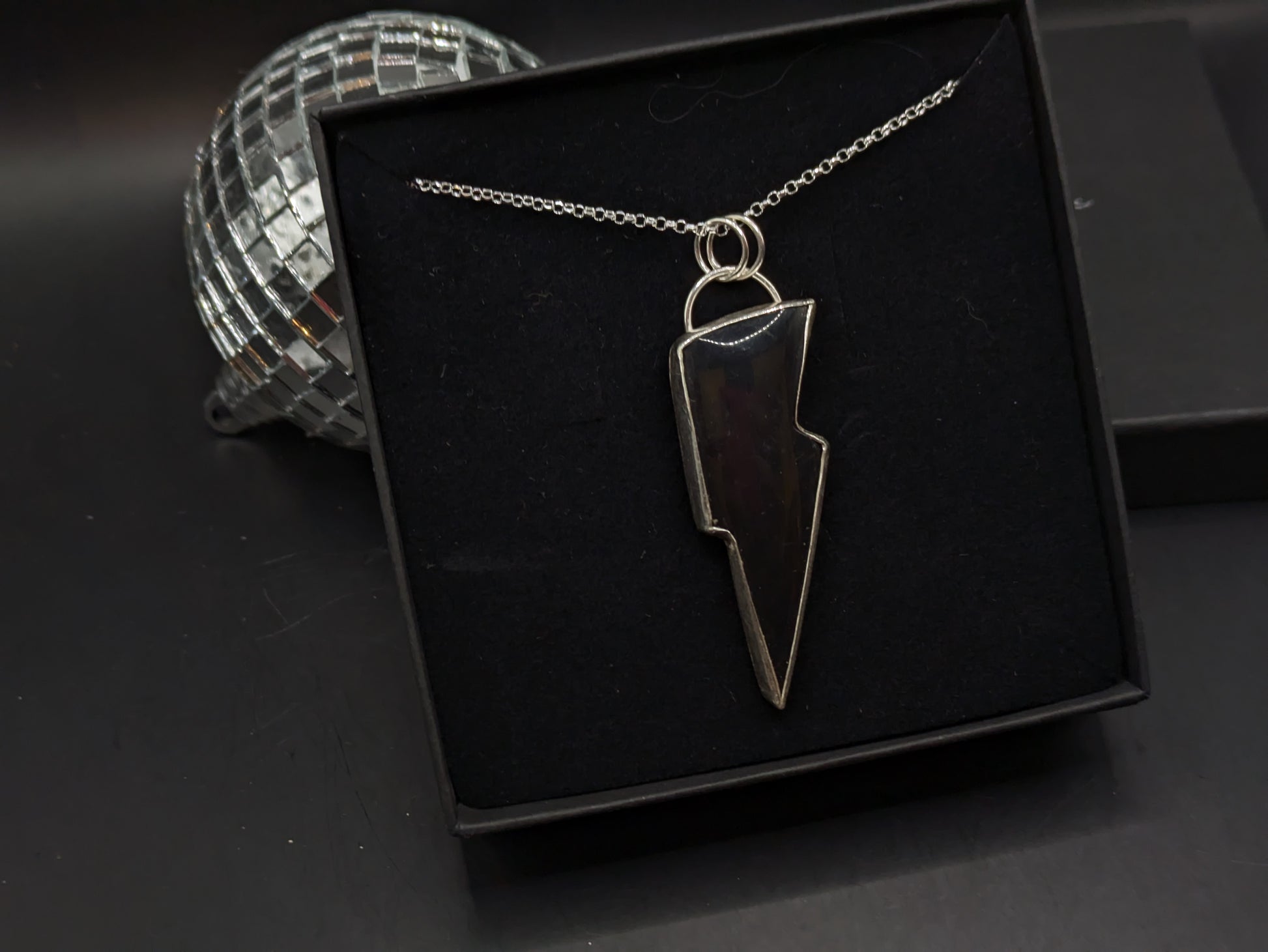 This gorgeous bolt shaped pendant has been handcrafted from an unwanted pool ball!
