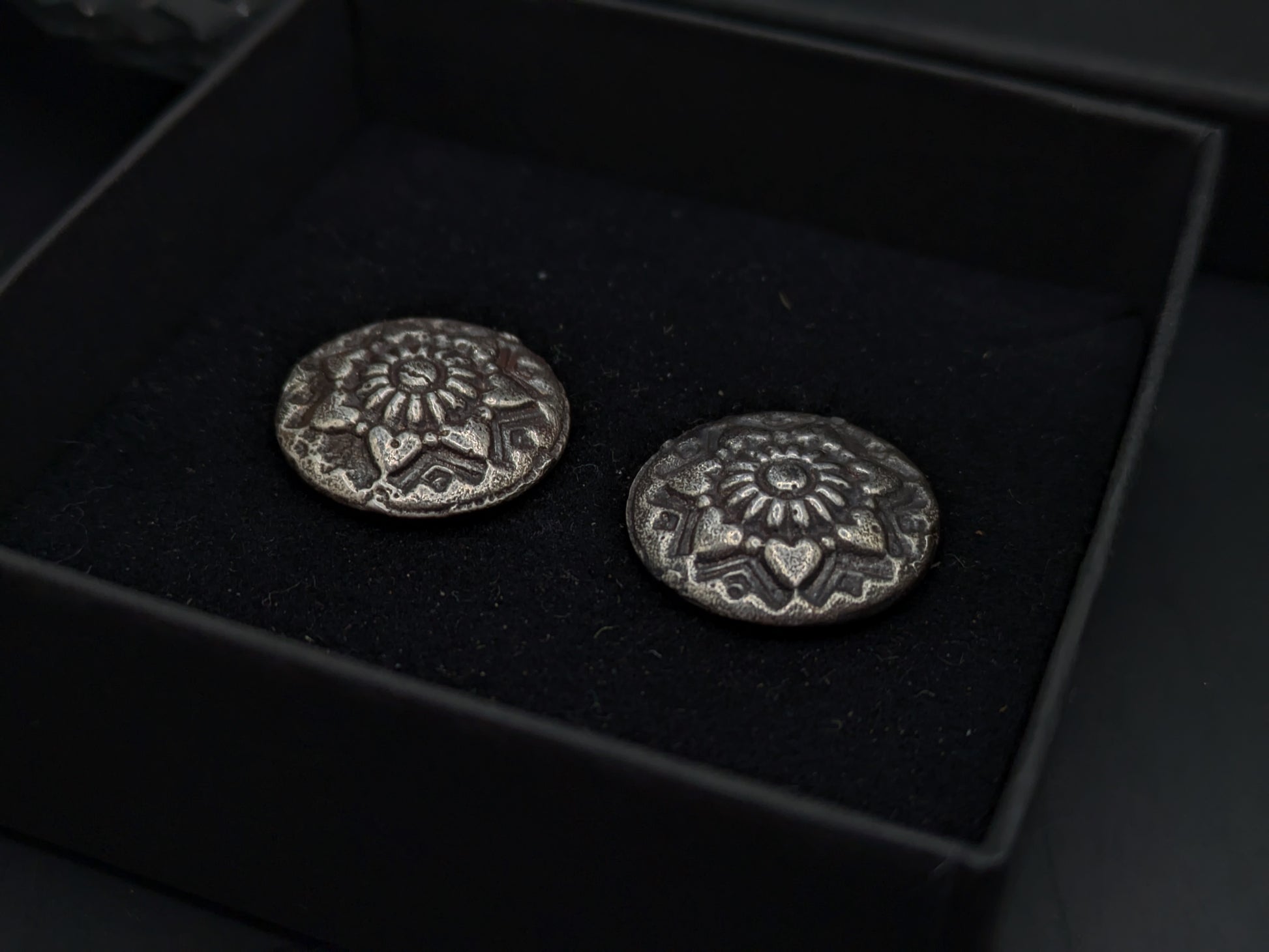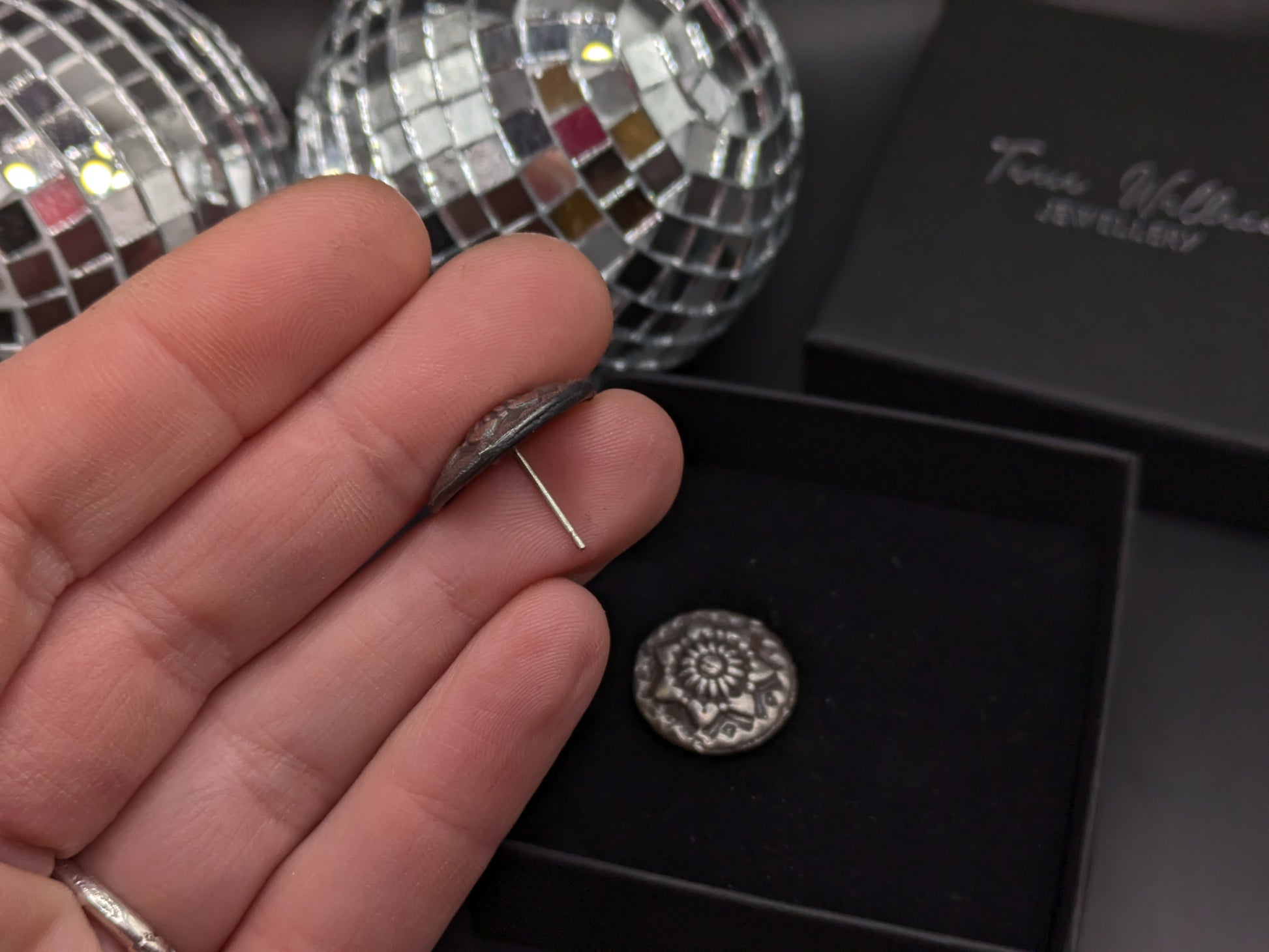 Gorgeous sand cast stud earrings which I cast from antique buttons that I bought from a really lovely lady at an antique event in Carmarthen last year.