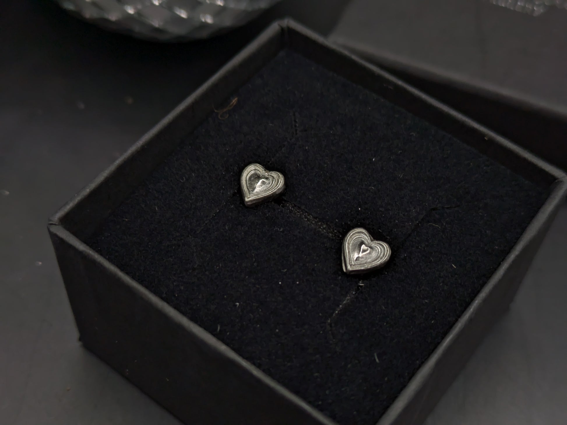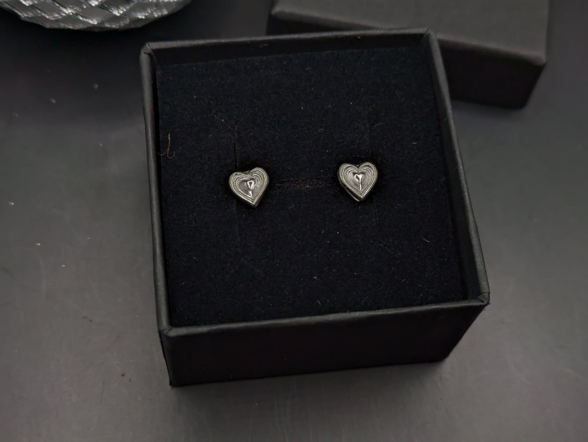 The studs have been polished up to a high shine and come with silver backs. Each heart is approximately 0.7 mm long.