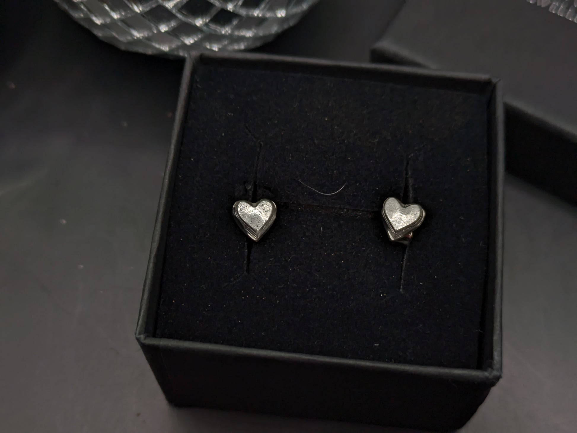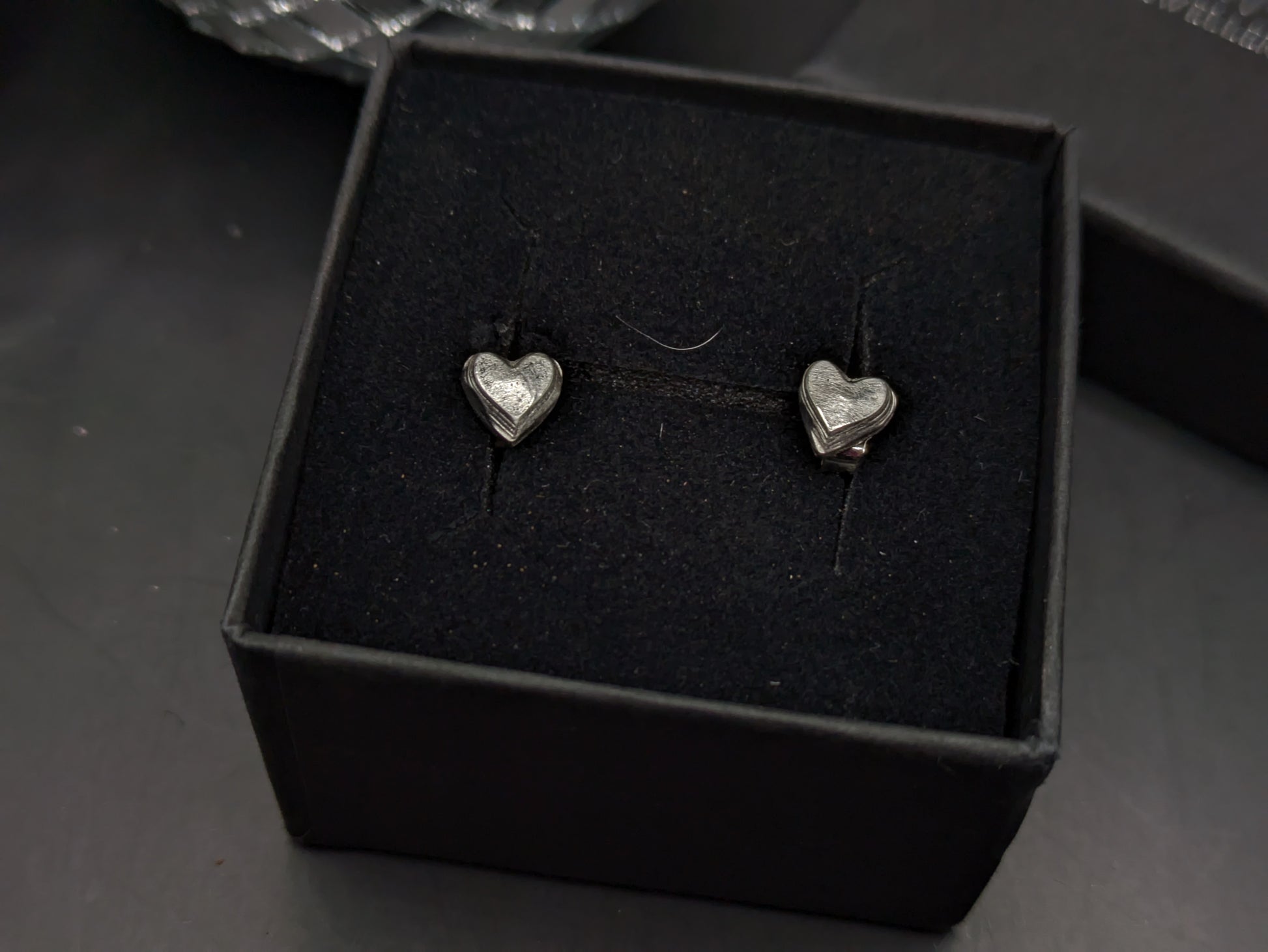 The studs have been polished up to a high shine and come with silver backs. Each heart is approximately 0.7 mm long.