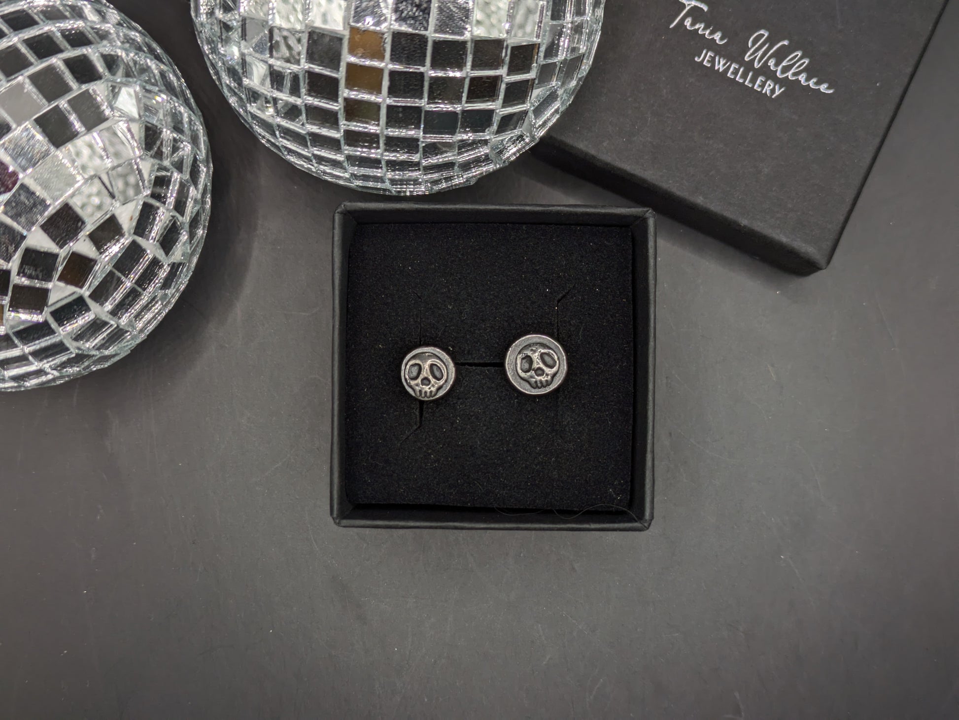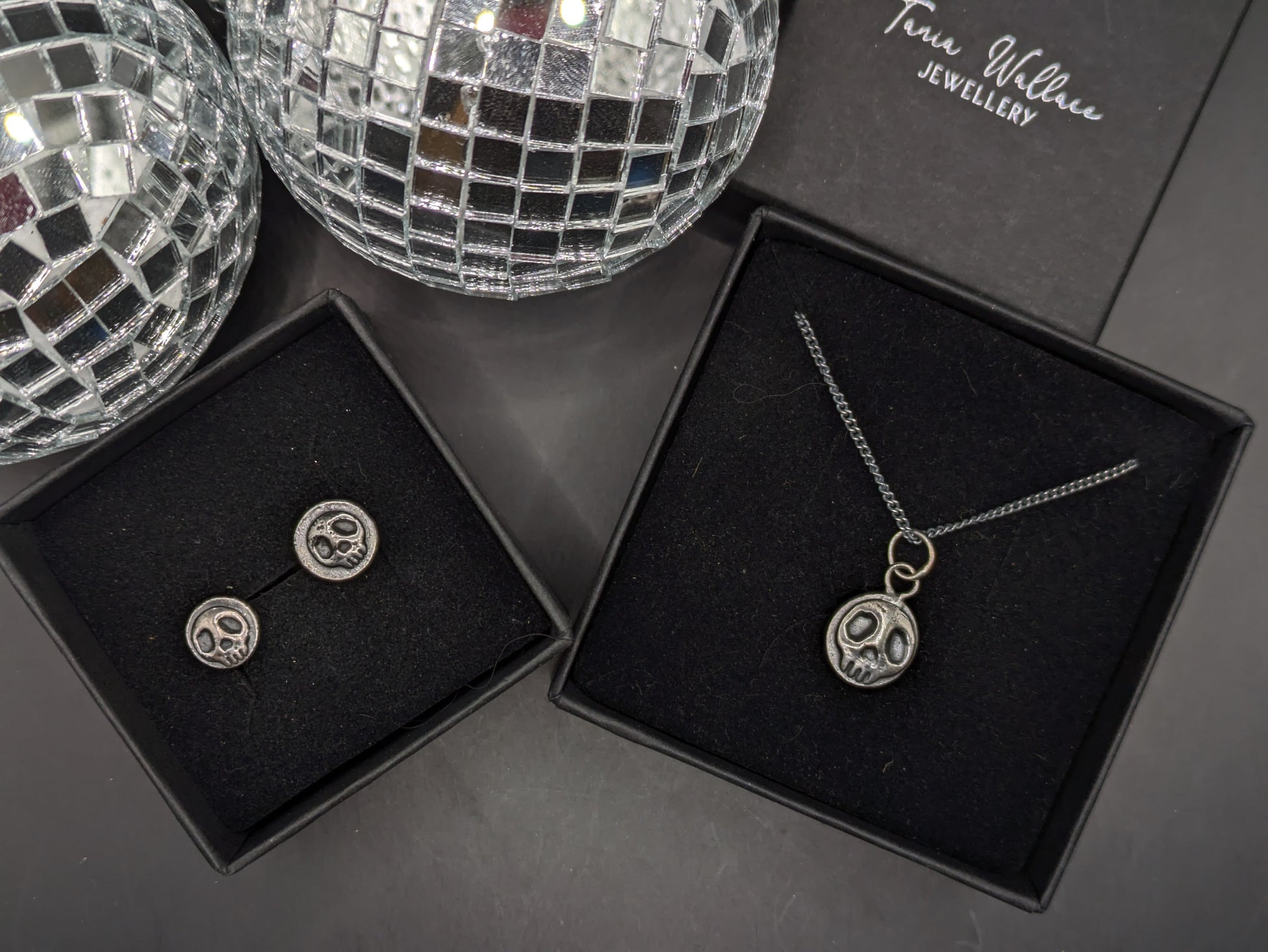 I've oxidised the skulls and given them a soft polish to make the raised surfaces nice and shiny and the eye sockets and other indentations dark and rustic.