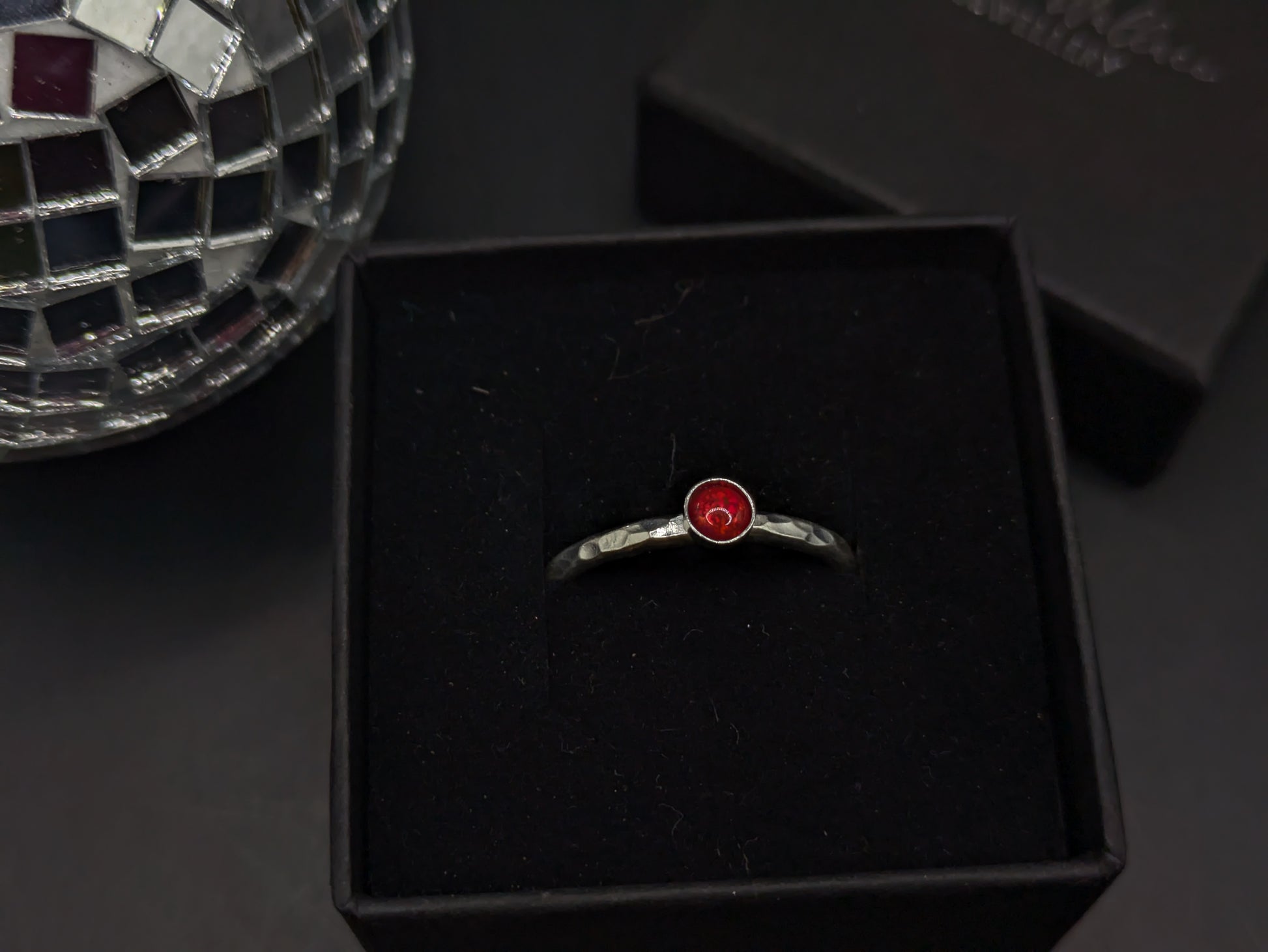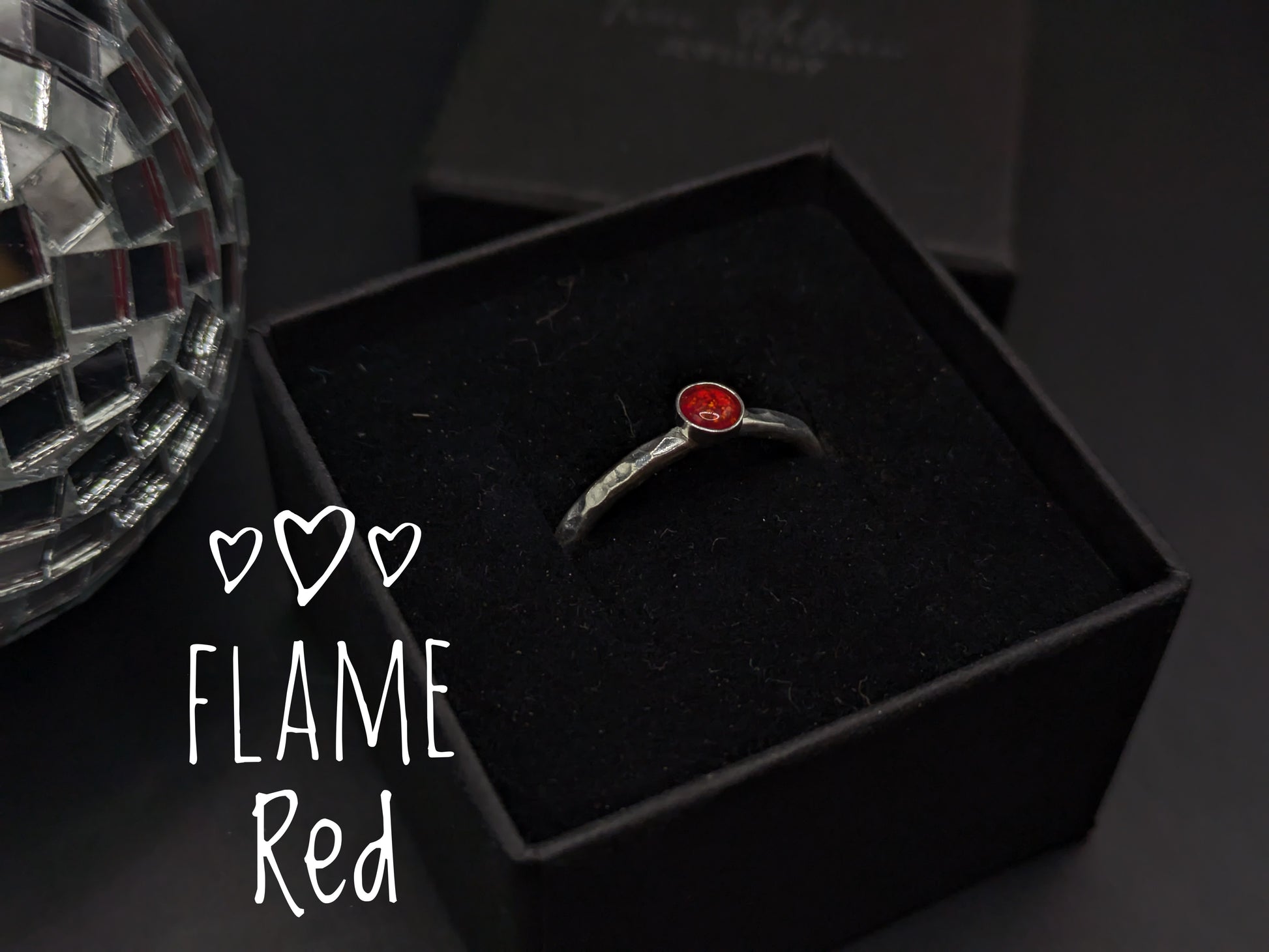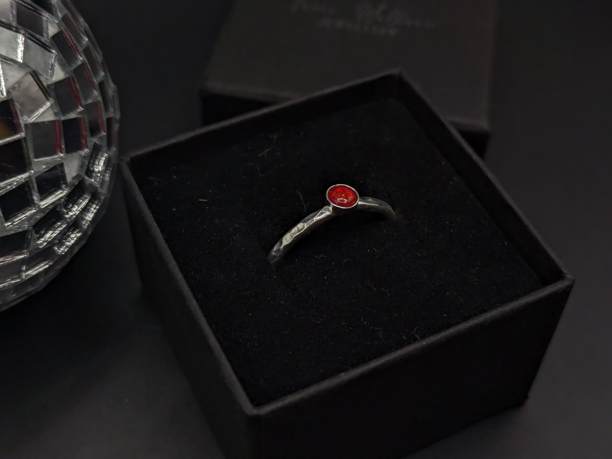 I have adorned it with a 4mm wide lab created opal. The lab created opal is an ethical, affordable and colourful alternative to a natural opal.