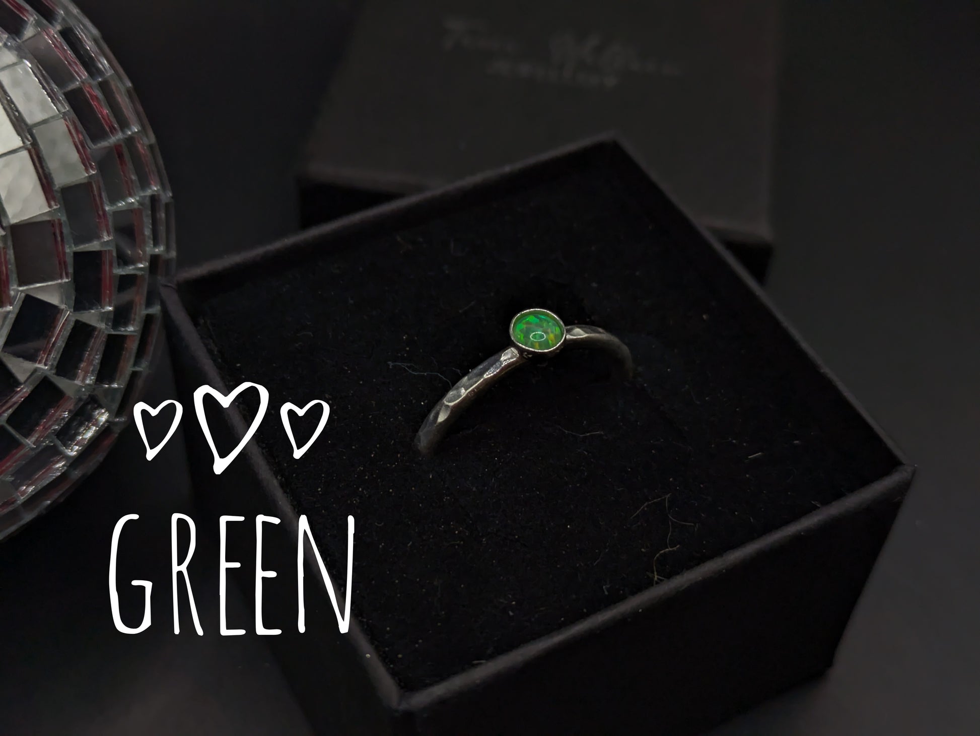 I have adorned it with a 4mm wide lab created opal. The lab created opal is an ethical, affordable and colourful alternative to a natural opal.