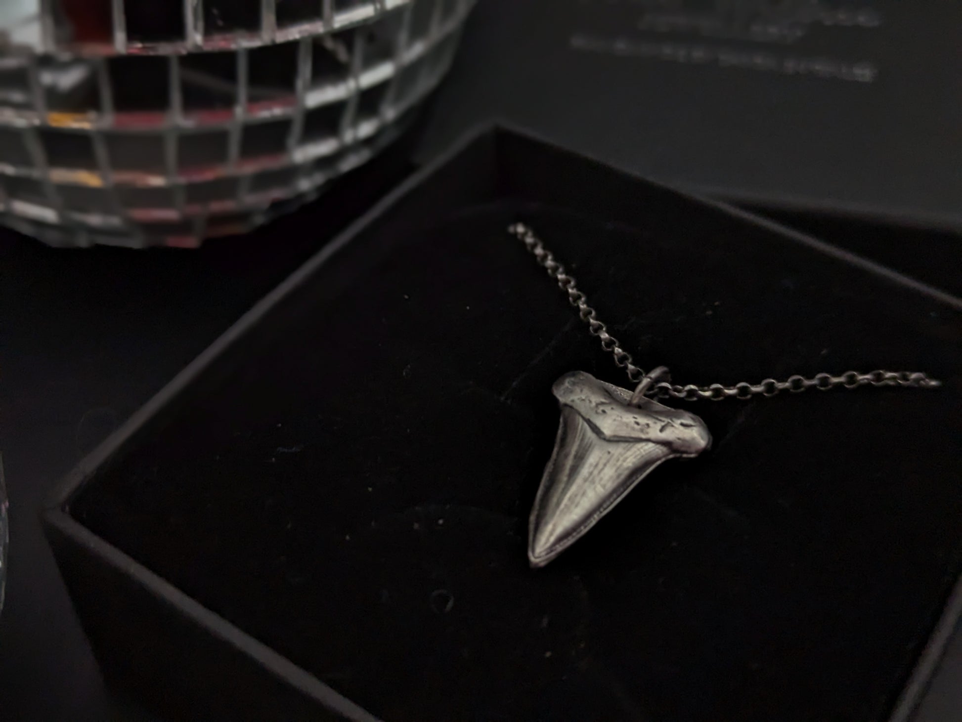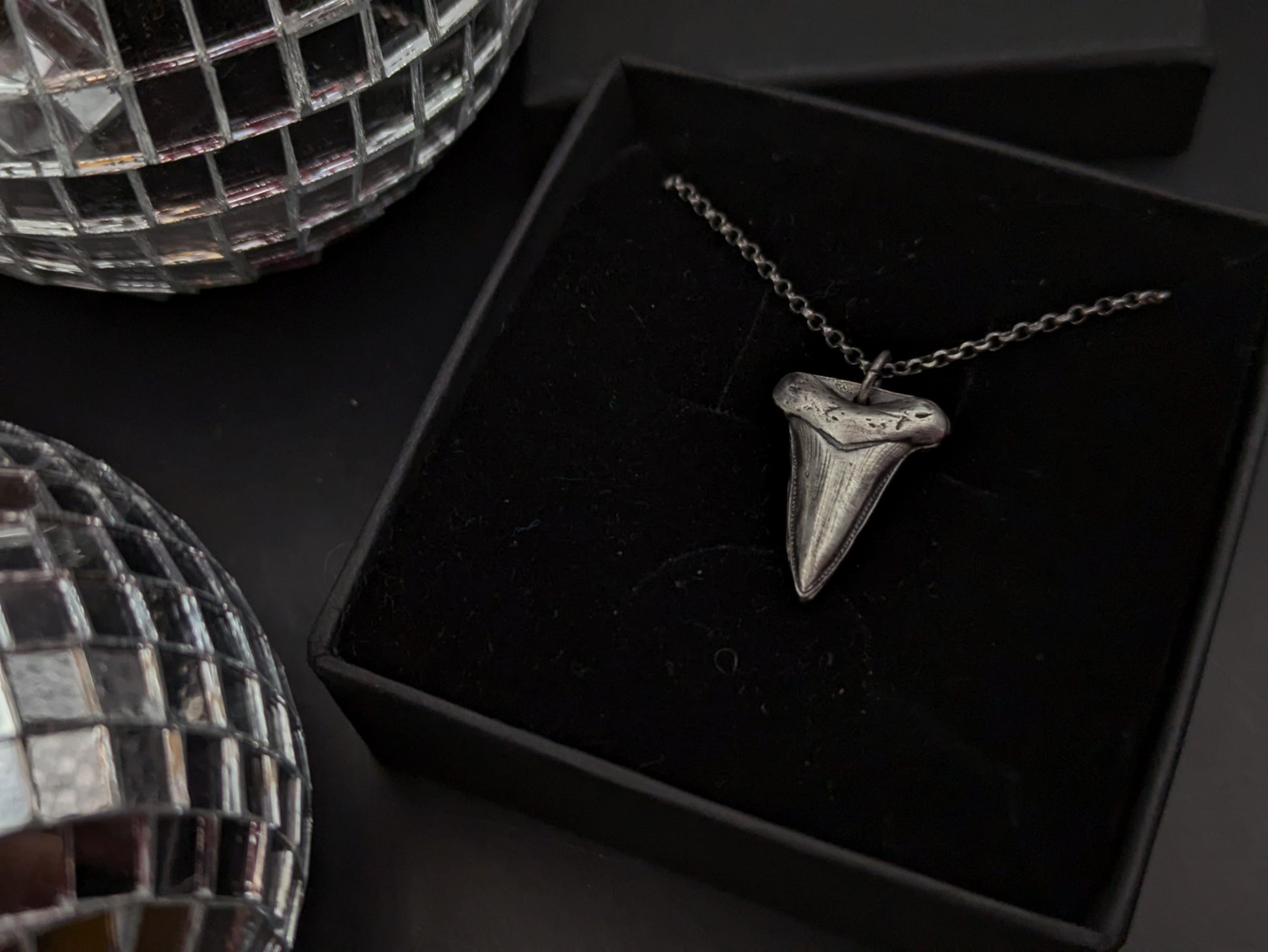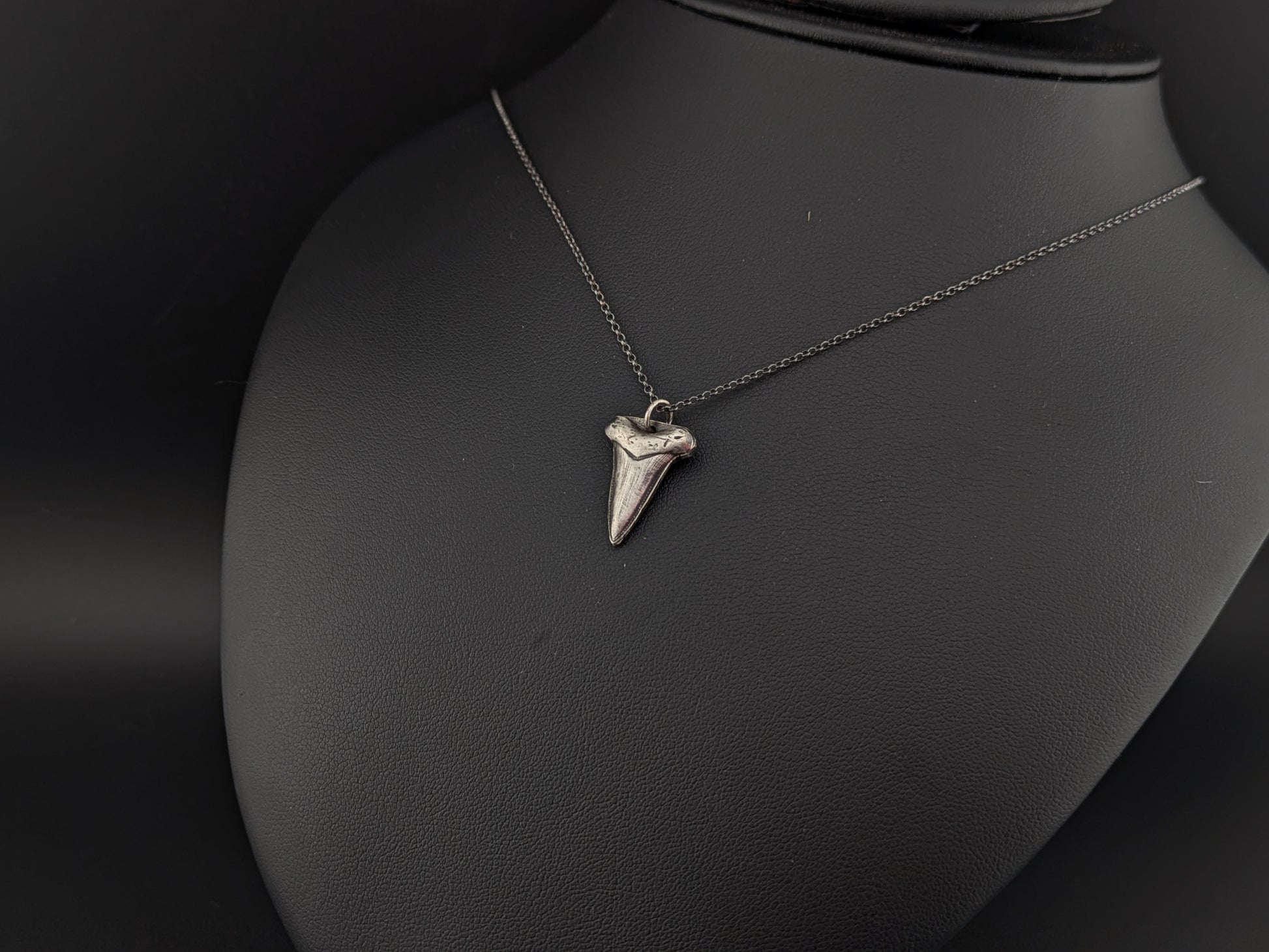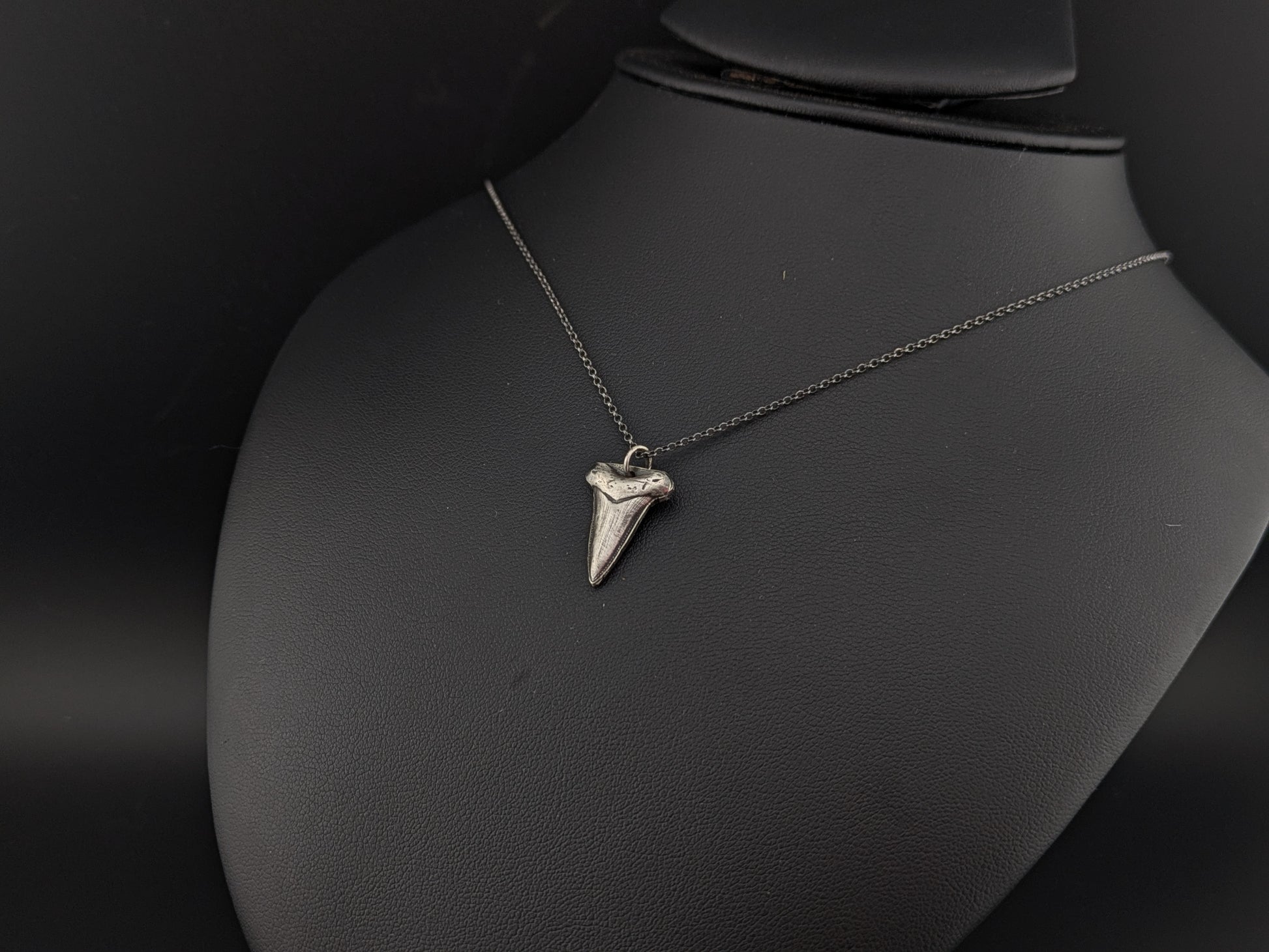 Sterling silver hand pressed and oxidised sharks tooth style pendant.