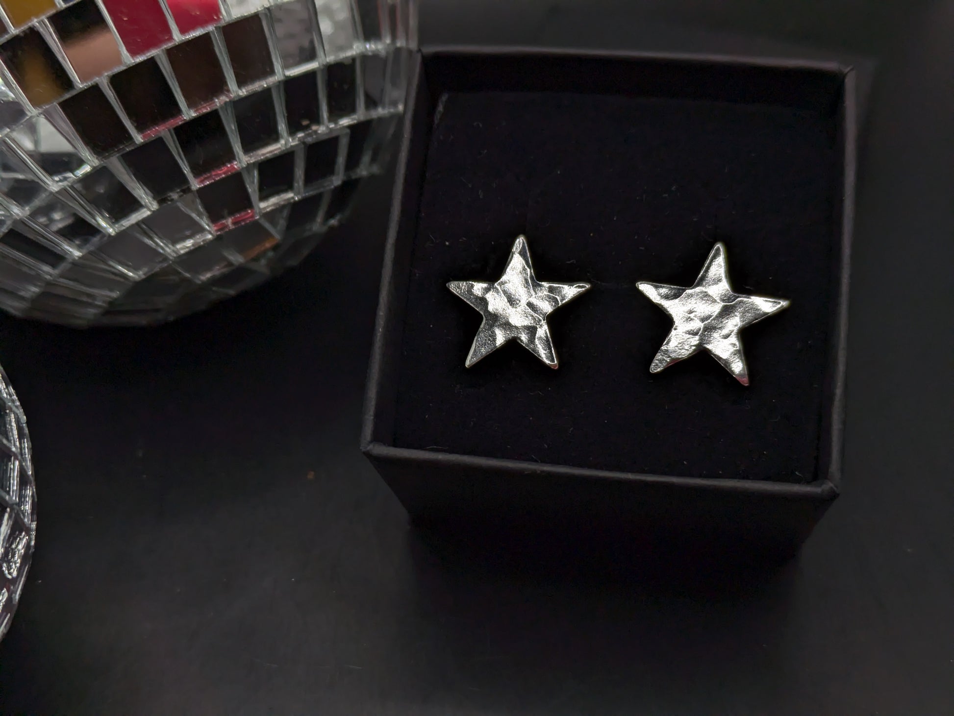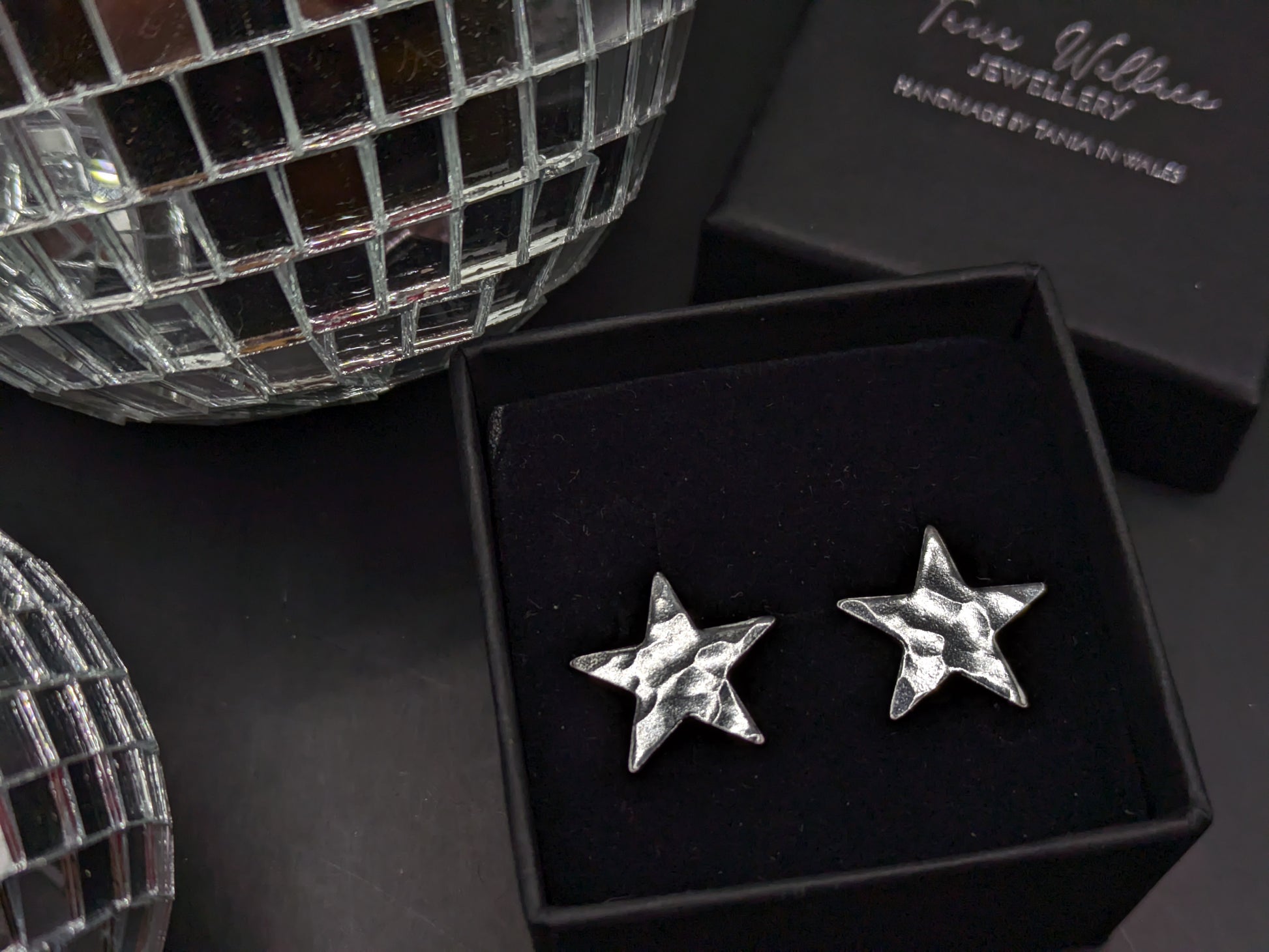 These lovely star stud earrings are handmade from recycled sterling silver and have been gently textured to give a little sparkling finish!
