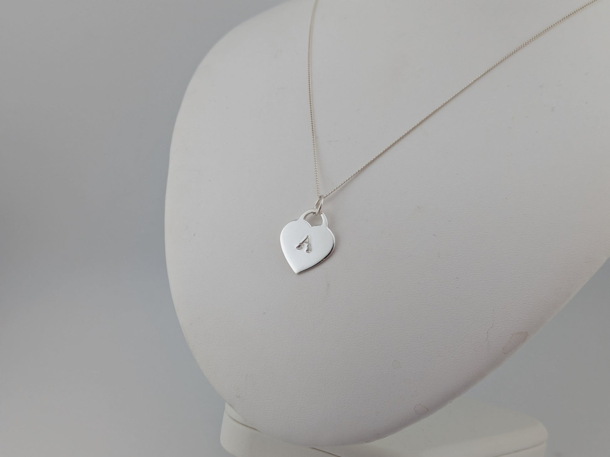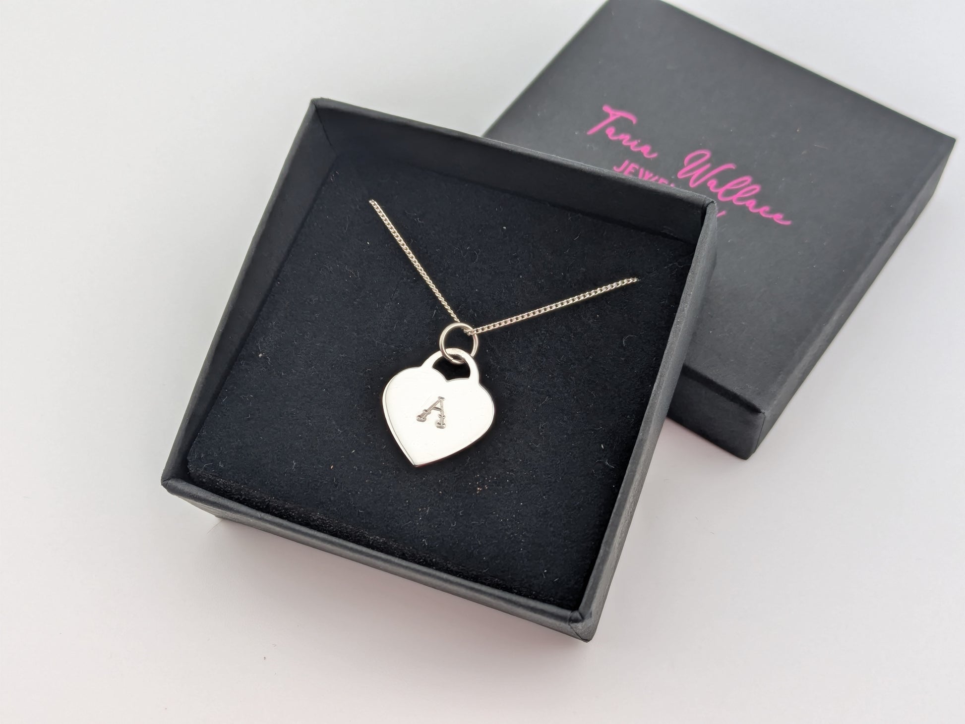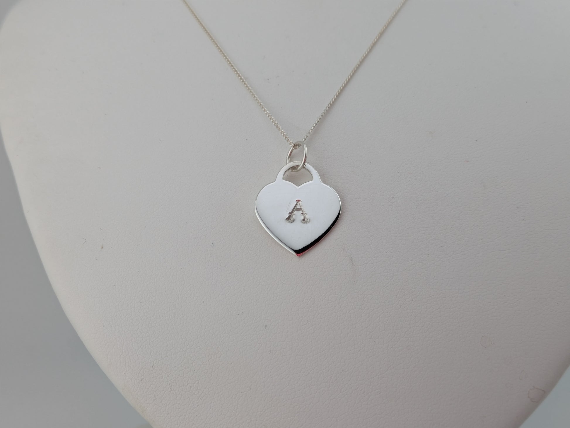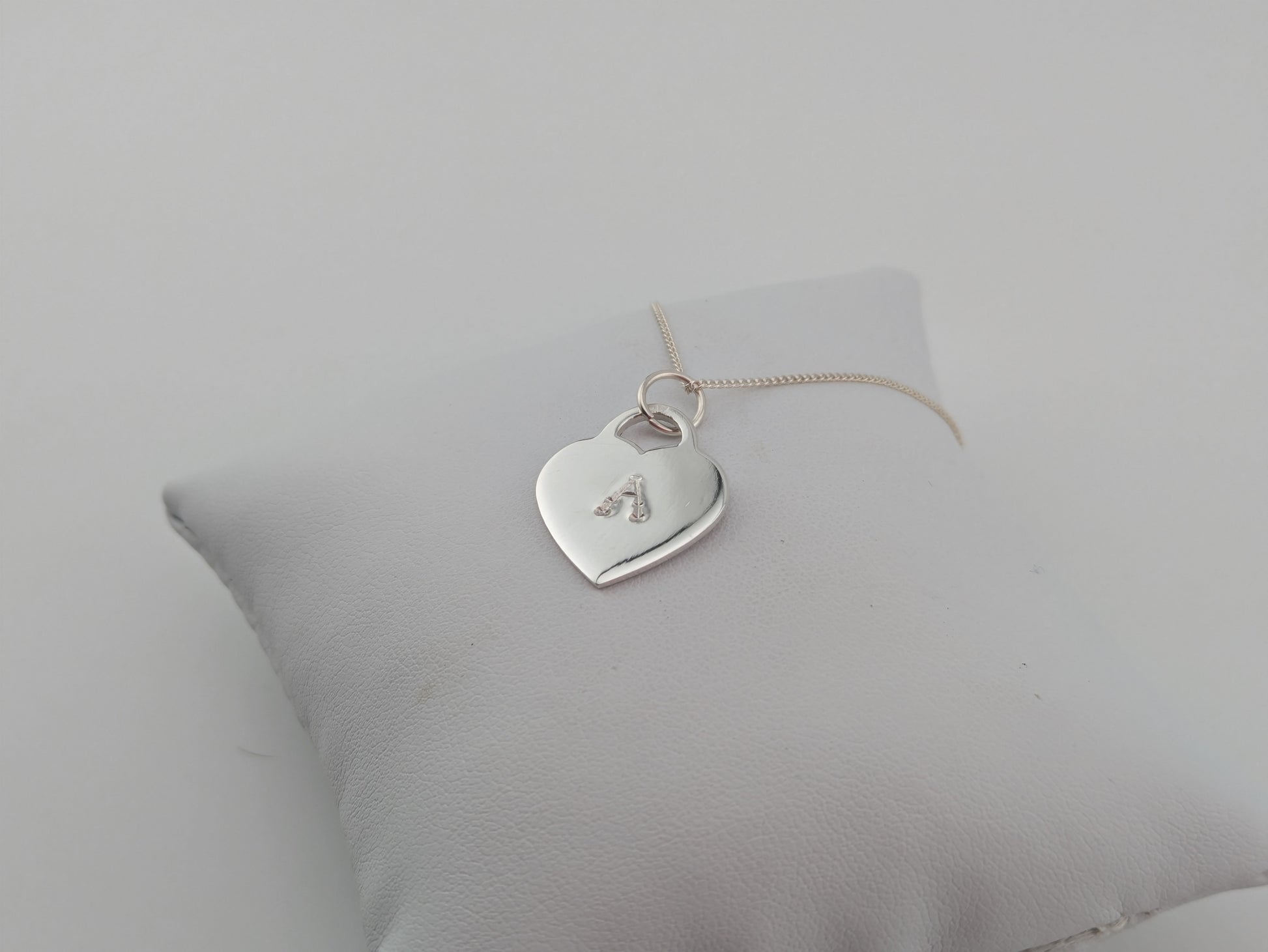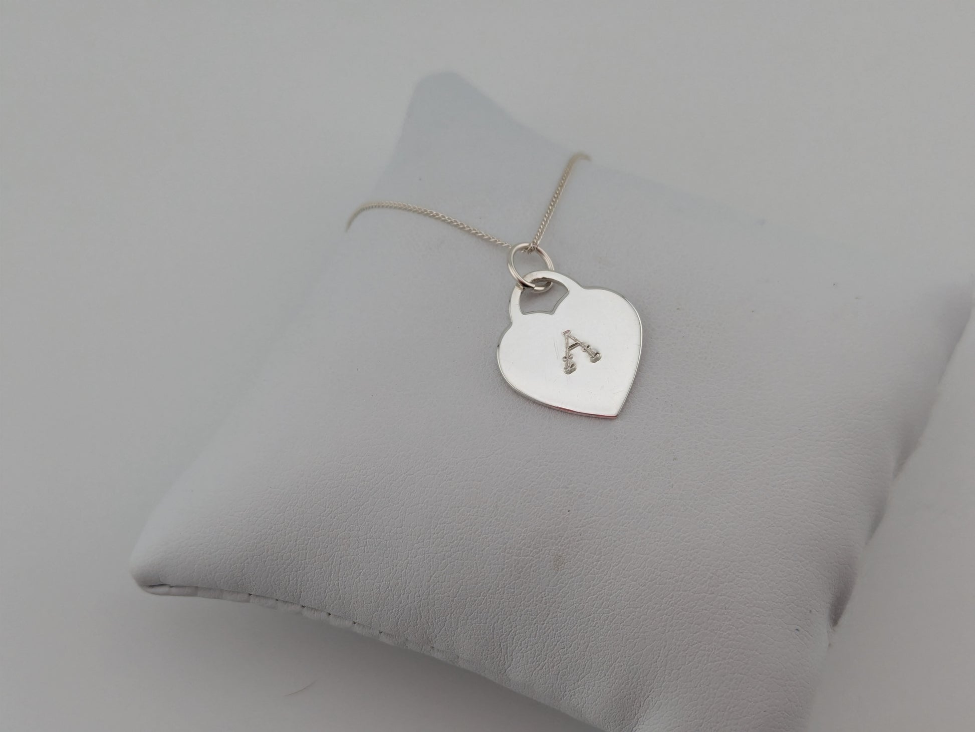 This is a perfect little gift for yourself or a loved one! A sterling silver heart shaped pendant measuring approximately 15mm wide which I have hand punched with your chosen initial.
